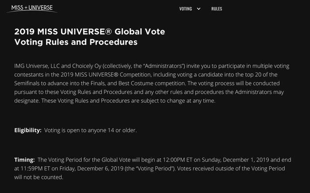 Luật chơi mới của Miss Universe 2019 khi xuất hiện cuộc bình chọn Top 20. Theo đó, người chiến thắng giải bình chọn này sẽ được đặt cách vào thẳng Top 20