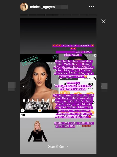 Minh Tú đã ra sức kêu gọi fan ủng hộ cho Hoàng Thùy tại cuộc chiến năm nay.