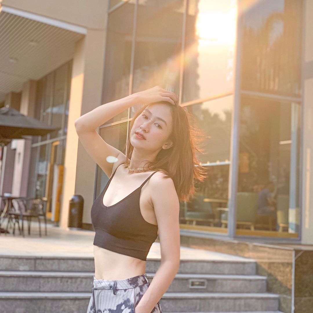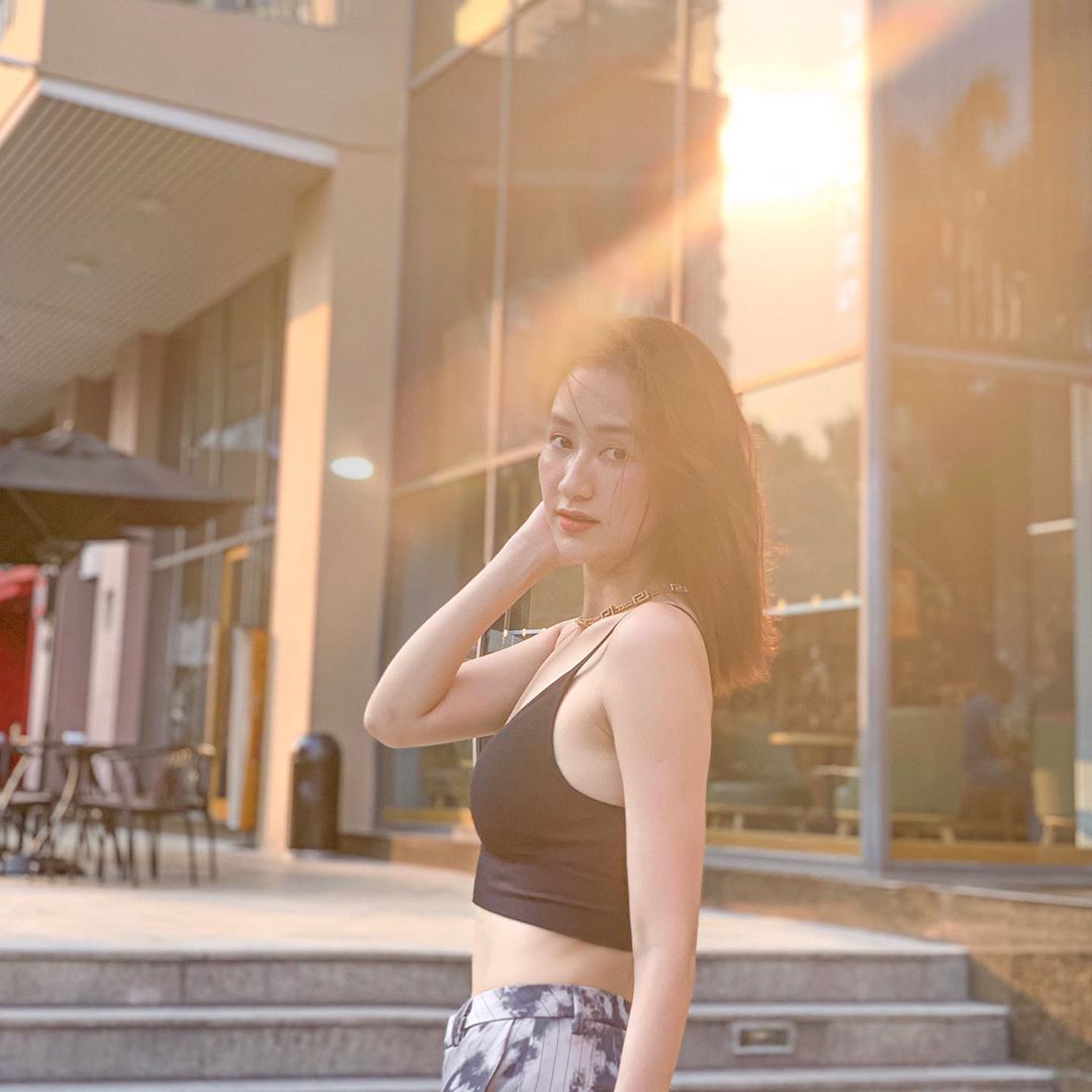Á hậu Hà Thu diện đồ thể thao khoe dáng thon gọn.