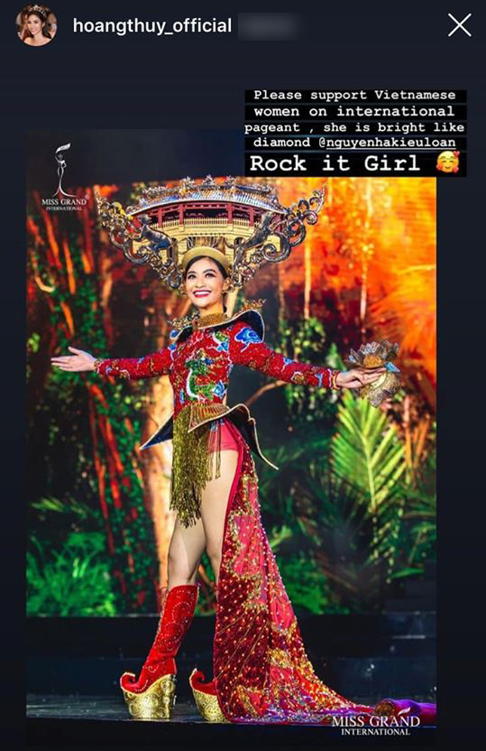 Hoàng Thùy từng động viên Kiều Loan trong quá trình dự thi tại Miss Grand International 2019.