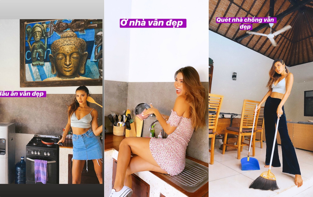 Hoa hậu Siêu quốc gia Châu Á 2018 tự tạo niềm vui bằng những shoot hình gợi cảm tại căn hộ nghỉ dưỡng.