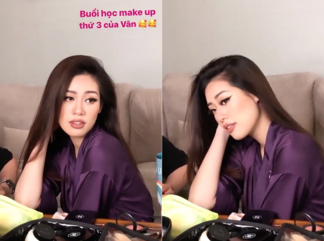 Hoa hậu Khánh Vân khoe thành quả sau buổi học make-up.