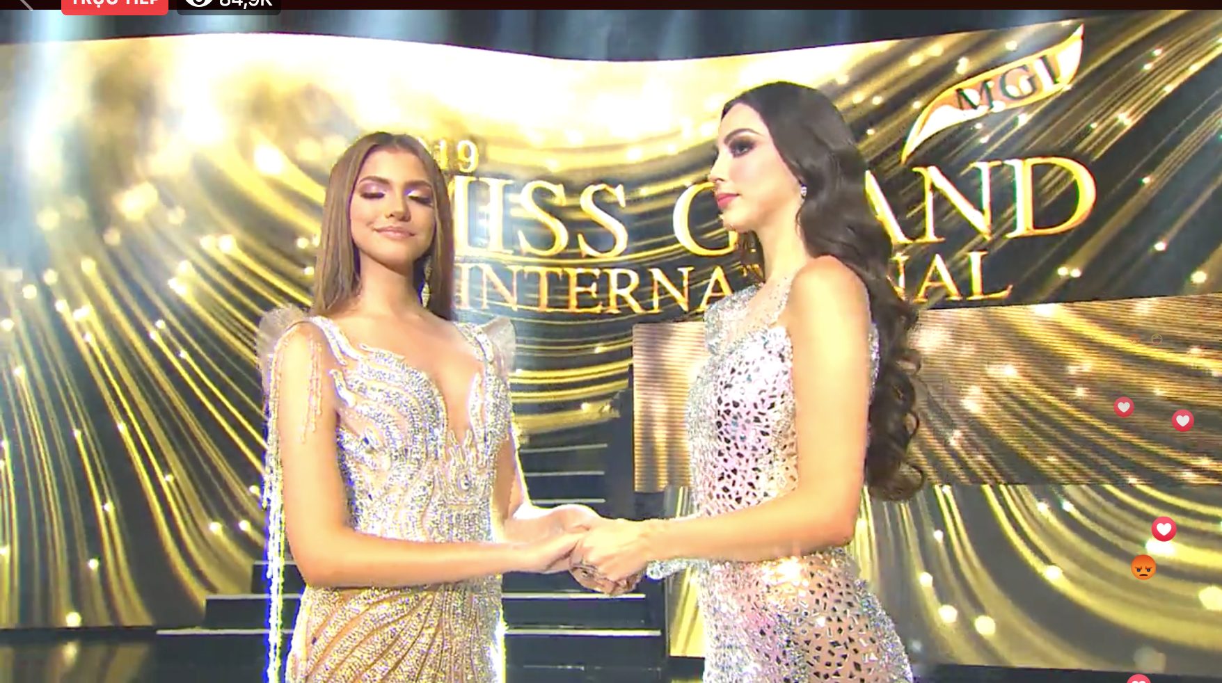 Đêm chung kết Hoa hậu Hòa bình Quốc tế - Miss Grand International 2019 đã khép lại với chiến thắng thuộc về mỹ nhân nước chủ nhà Venezuela. Á hậu 1 là người đẹp đến từ Mexico. Danh hiệu á hậu 2 được trao cho thí sinh Thái Lam. Á hậu 3 gọi tên Panama. Đại diện Brazil giành ngôi vị á hậu 4.