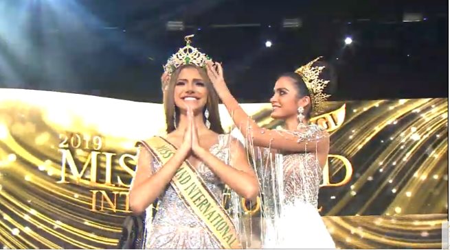 Khoảnh khắc đăng quang của Tân Hoa hậu Hòa bình Quốc tế 2019 - Mỹ nhân Venezuela.
