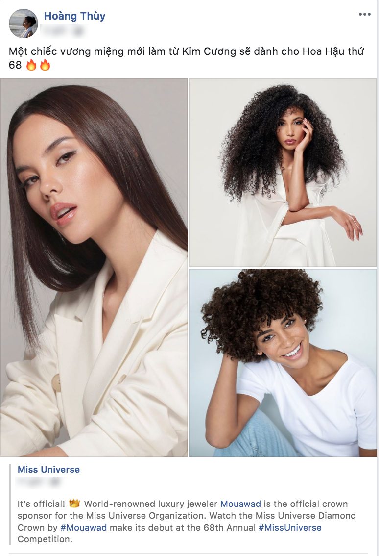 Trước thông tin này, á hậu Hoàng Thùy chia sẻ cảm xúc phấn khích vì chính người đẹp Thanh Hóa sẽ có cơ hội chạm tay vào vương miện mới bằng kim cương lần đầu ra mắt tại Miss Universe 2019. Hiện tại, Hoàng Thùy đang trong quá trình tập luyện nghiêm túc, quyết tâm trở thành đại diện Việt Nam đầu tiên đăng quang Hoa hậu Hoàn vũ.