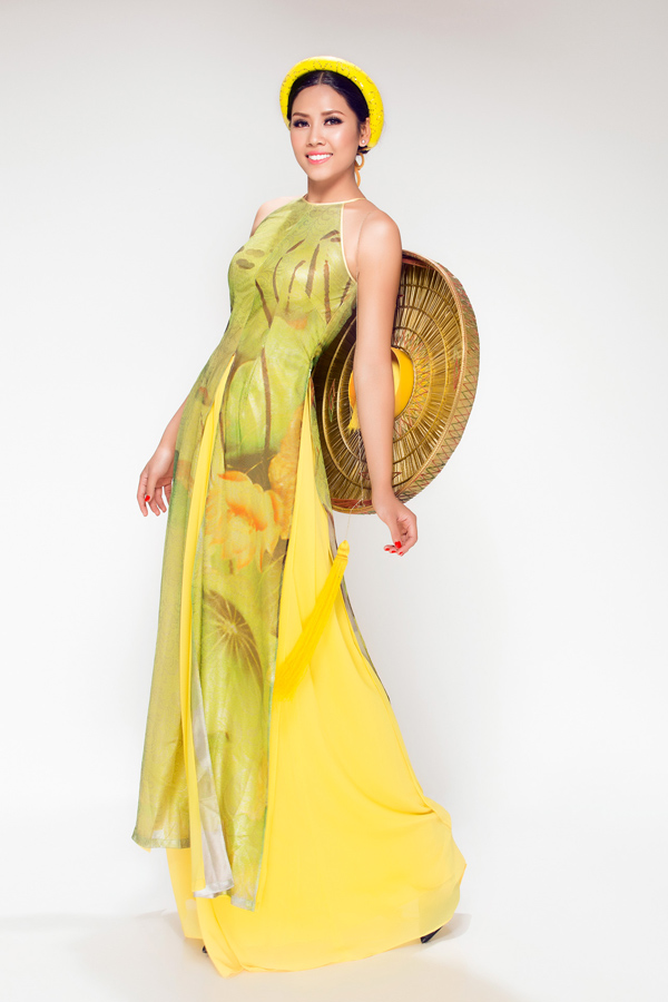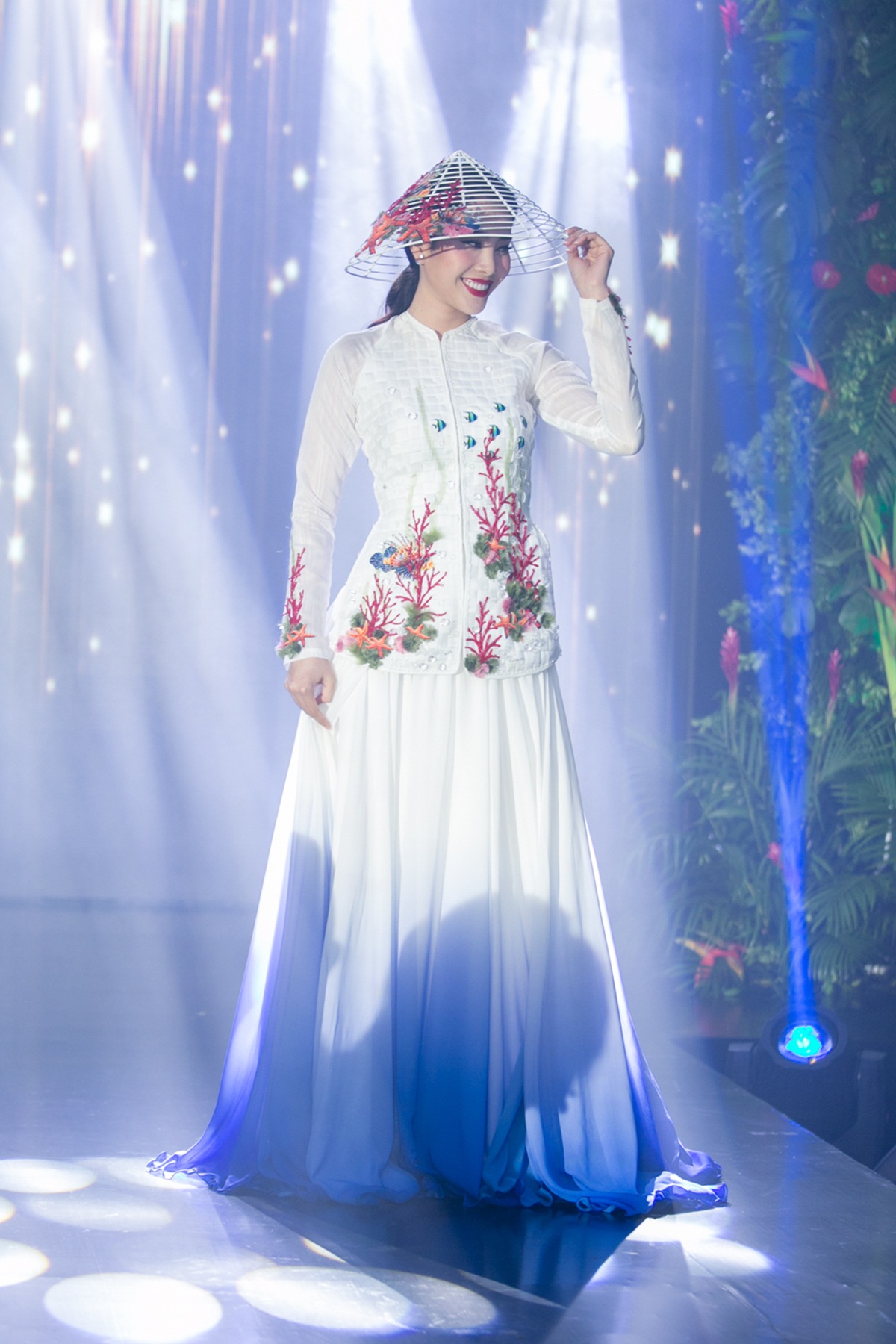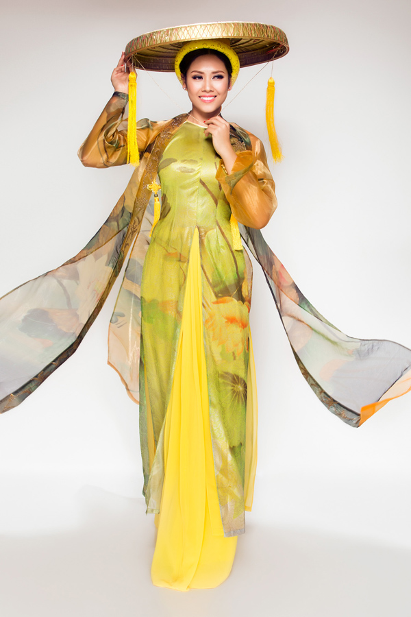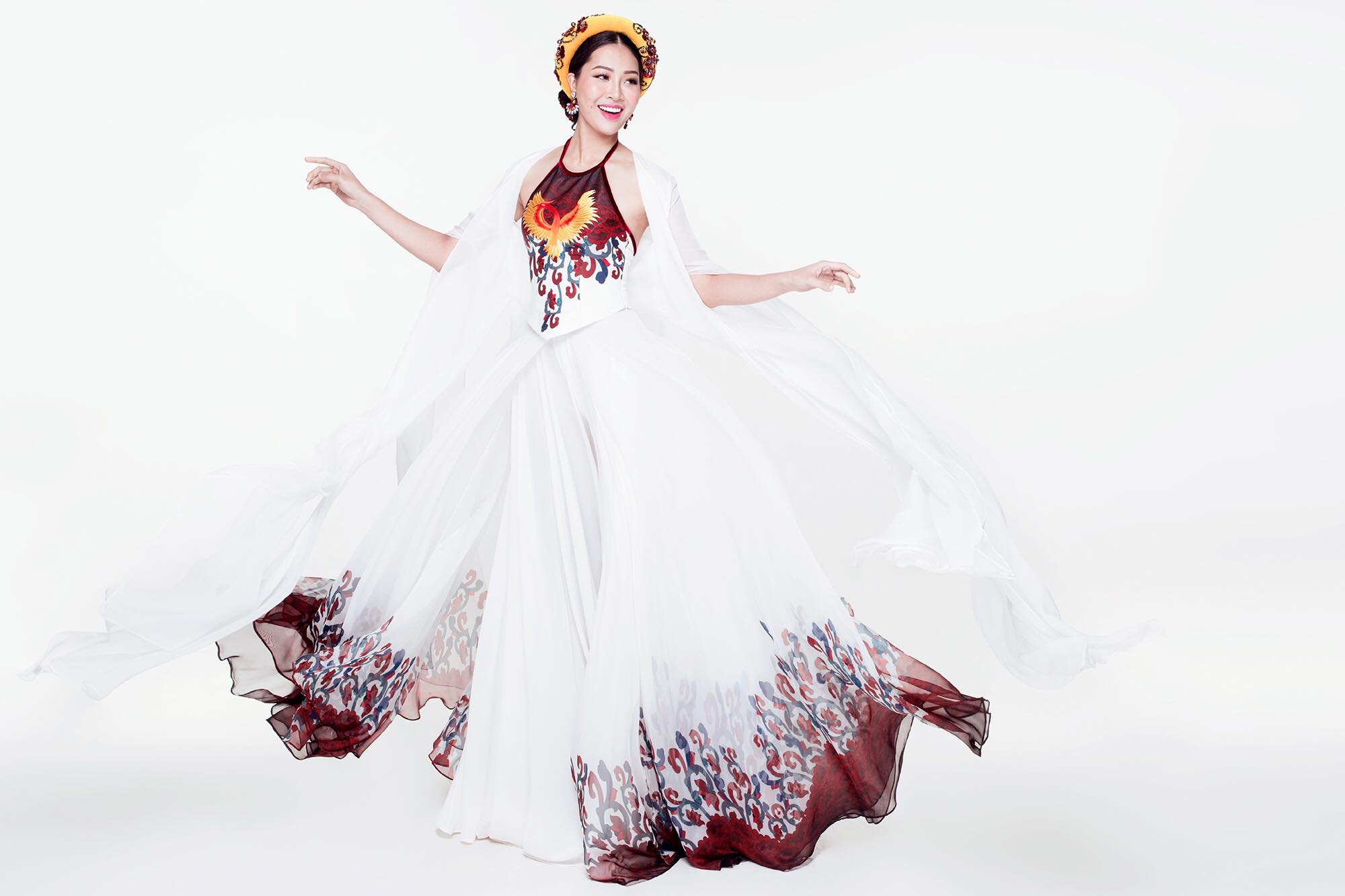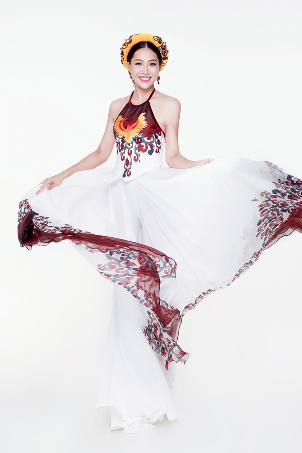 Sau Nam Em thì đây là lần thứ 2 áo bà ba xuất hiện trên đấu trường nhan sắc quốc tế. Tuy giản dị nhưng khi phối hợp với hoa văn và phụ kiện tinh tế thì bộ trang phục này cũng trở nên vô cùng nổi bật.