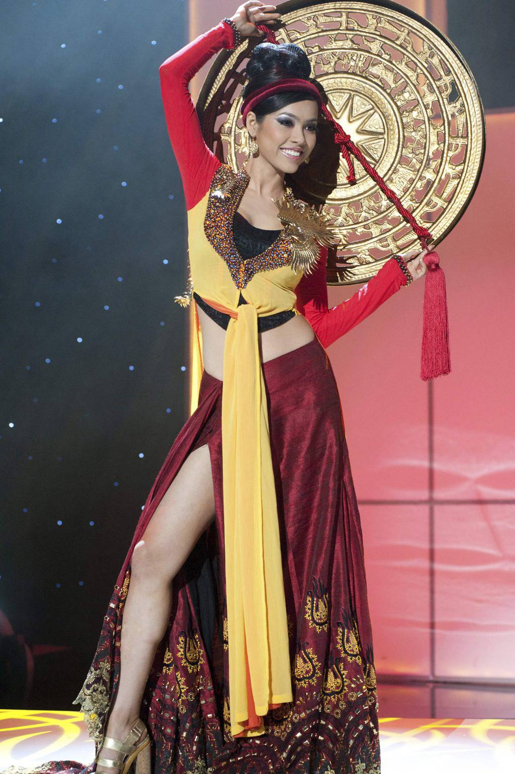 Bộ National Costume kết hợp màu sắc rực rỡ giúp người đẹp Kiều Khanh thu hút được nhiều ánh mắt khán giả và để lại được điểm nhấn trên sân khấu Miss World 2010.