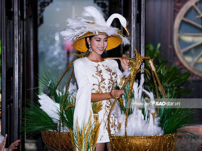 Người đẹp Mỹ Duyên đã truyền tải trọn vẹn nét đẹp văn hóa Nam Bộ qua trang phục dân tộc mang tên “Gánh quê” khi dự thi Miss Global 2019. Áo bà ba, nón lá, đôi quang gánh và hình ảnh của cánh cò, ngọn lúa đều được người đẹp khoắc họa chân thực khiến khán giả trầm trồ khen ngợi.