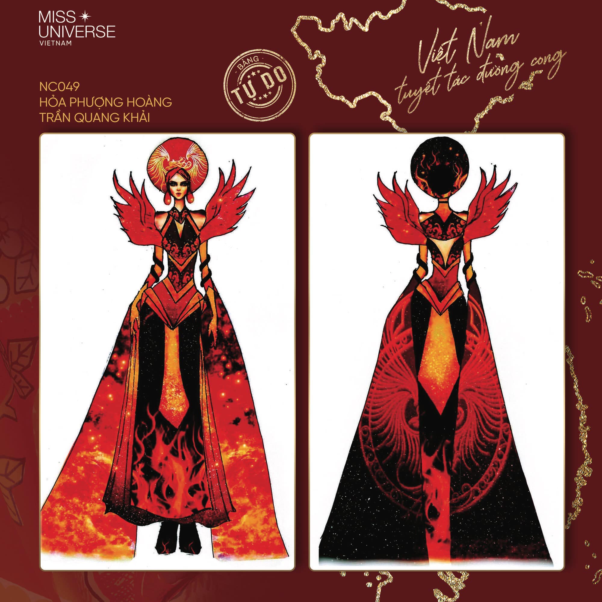 “Lửa và Phượng Hoàng” là hai hình ảnh mang đầy tính táo bạo và phá cách khi được sử dụng để làm điểm nhấn cho trang phục “Hỏa phượng hoàng”. Hình ảnh phượng hoàng được tôi luyện trong lửa để trở nên mạnh mẽ và tràn đầy khí chất. Bộ trang phục mang ý nghĩa khẳng định một điều rằng “Ngọc có mài mới sáng, vàng càng luyện càng trong”.