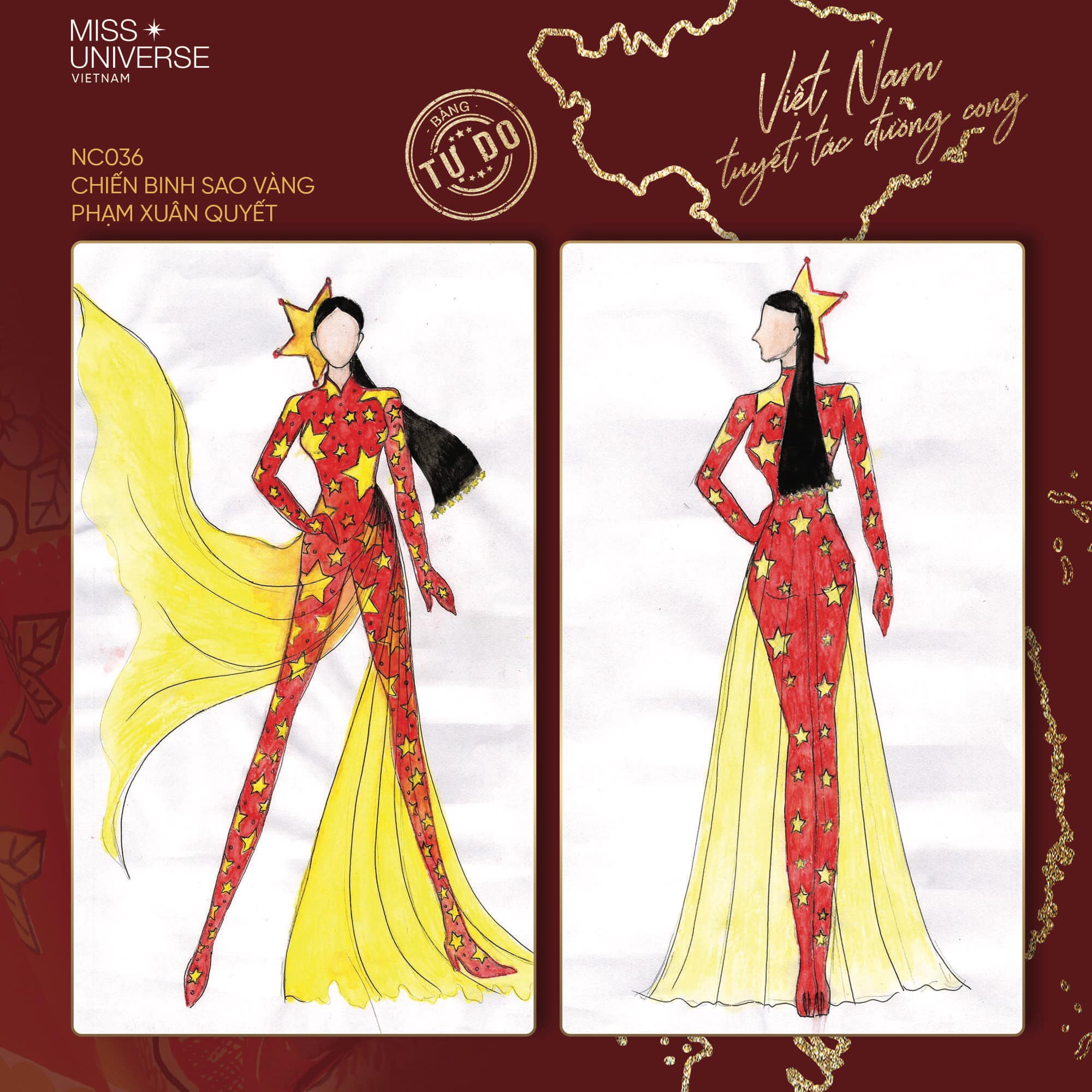 Cờ đỏ sao vàng, hình ảnh thiêng liêng và tự hào của dân tộc Việt Nam được biến hóa vào trang phục dành cho Miss Universe Vietnam 2020. Bộ áo dài cách tân với tông màu đỏ và vàng là chủ đạo, điểm xuyến bằng phụ kiện bắt sáng cho các ngôi sao trên trang phục sẽ giúp Hoa hậu Hoàn vũ Việt Nam 2020 vừa thể hiện sự mới lạ, khỏe khoắn, tự tin, độc đáo như nữ chiến binh Sao Vàng bảo vệ chính nghĩa, tự do và hạnh phúc, vừa thể hiện một Việt Nam năng động, sáng tạo và quả cảm.