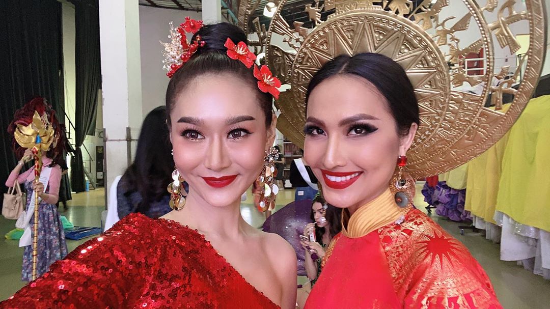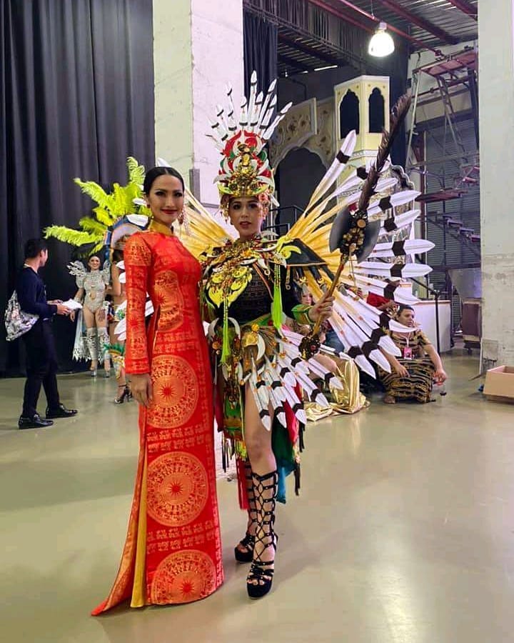 Áo dài của Việt Nam cũng vô cùng nổi bật khi đứng cạnh National Costume của đại diện Indonesia.