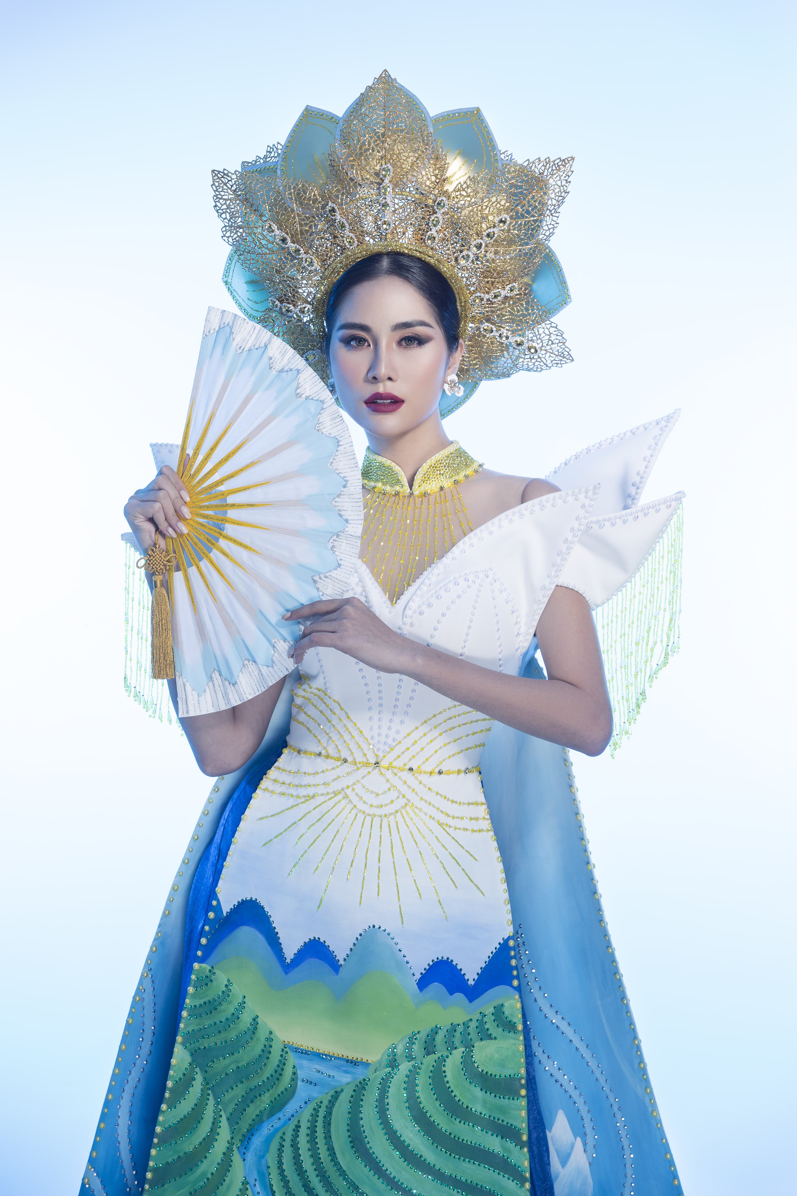 Á hậu Hoàng Hạnh đã mang hình ảnh của những thửa ruộng bậc thang, mây trời và sông núi hùng vĩ vào bộ National Costume của mình khi đại diện Việt Nam tại Miss Earth 2019 nên bộ trang phục này đã mang một màu xanh mỹ lệ. Có thể thấy, nhờ vào việc truyền tải thông điệp về môi trường một cách đầy tinh tế mà cô nàng đã nhận được huy chương đồng ở phần thi này.