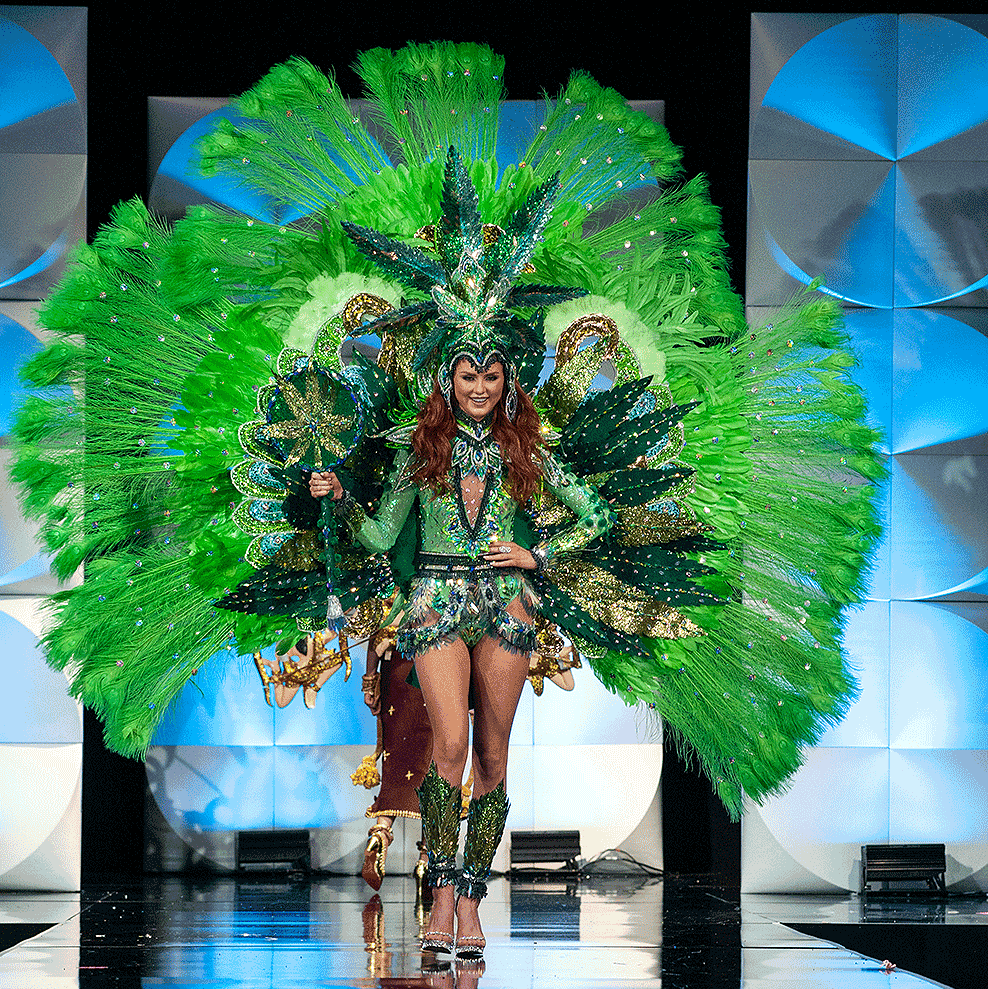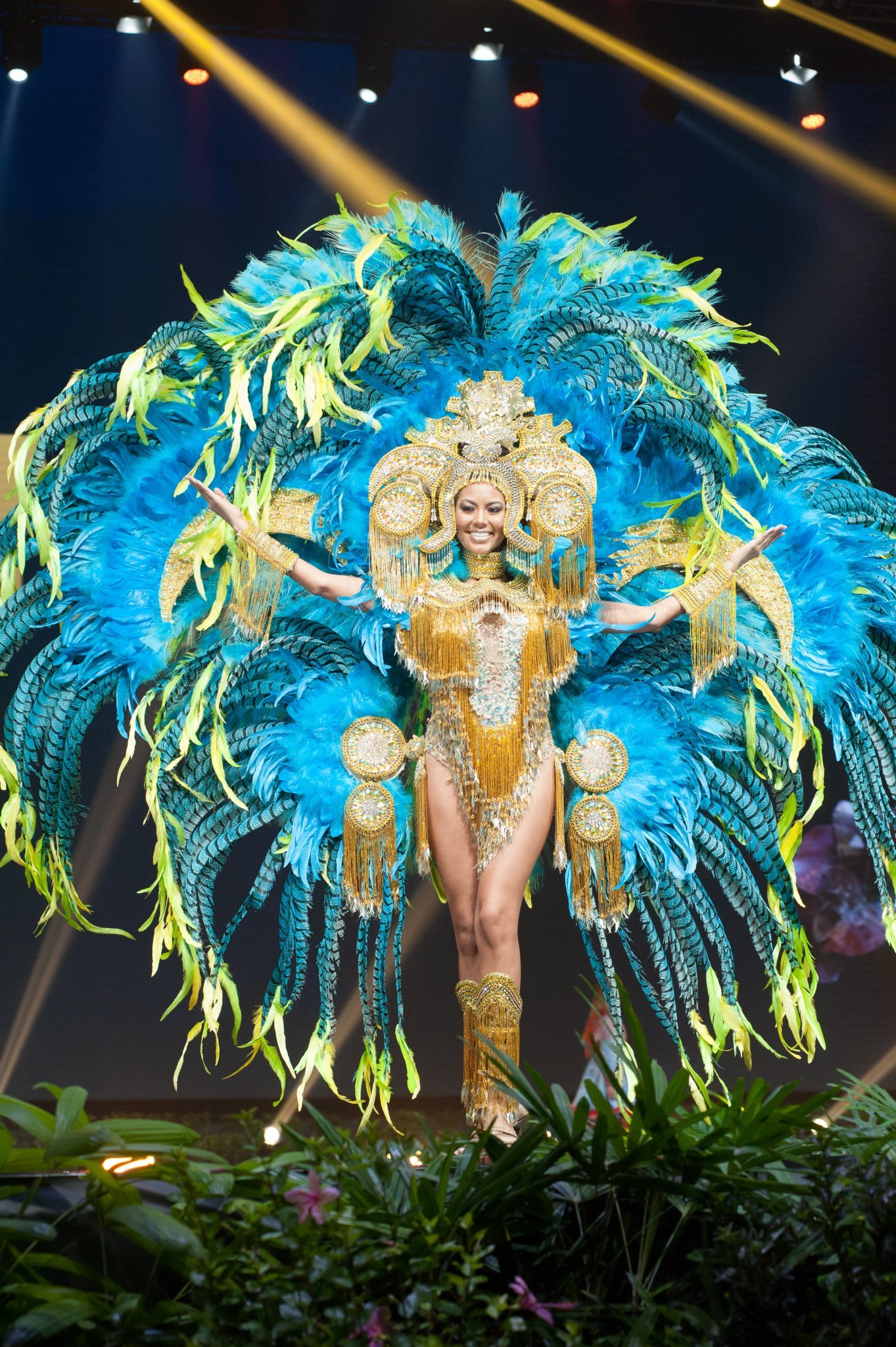 Phần thi Trang phục dân tộc luôn được khán giả trông chờ tại các cuộc thi sắc đẹp trên thế giới. Không chỉ vì những thiết kế này được đầu tư hoành tráng và ấn tượng mà qua đó, người hâm mộ còn nhìn thấy được sắc màu văn hóa riêng biệt, độc đáo của từng quốc gia. Bên cạnh những gam màu nổi bật luôn được các người đẹp ưu tiên lựa chọn như: vàng, đỏ, trắng hoặc cam thì những bộ National Costume mang sắc xanh đằm thắm cũng không ít lần khiến các fan phải trầm trồ.
