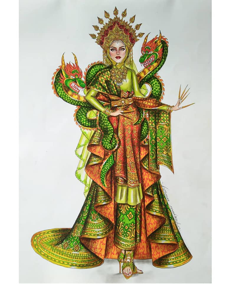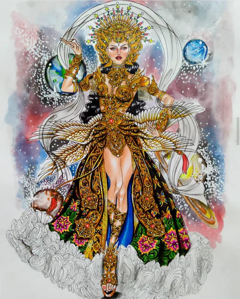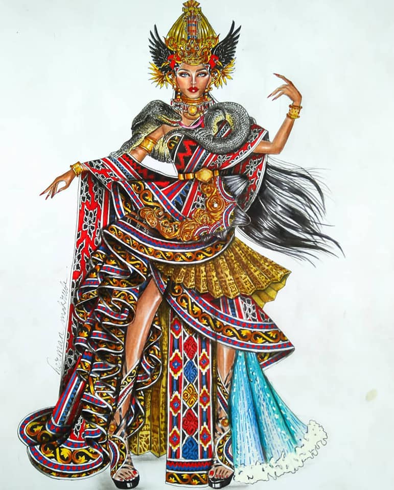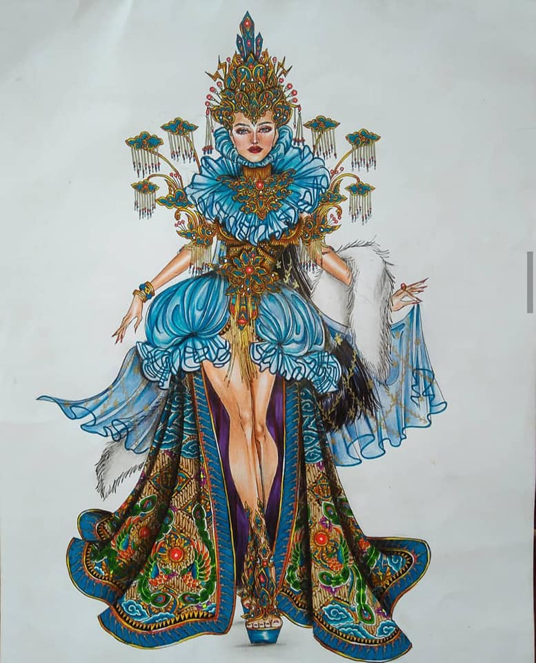 Mới đây, cộng đồng fan sắc đẹp tại Việt Nam được dịp trầm trồ khi trên mạng xã hội xuất hiện nhiều mẫu vẽ National Costume được cho là dành riêng cho đại diện Indonesia – Ayu Maulida và đại diện Thái Lan chưa lộ diện tại Miss Universe 2020. Những thiết kế trang phục dân tộc này này không chỉ thể hiện được nét đặc trưng văn hóa của quốc gia mà còn cho thấy được sự hoành tráng, cầu kì và lộng lẫy khi các người đẹp diện lên người.