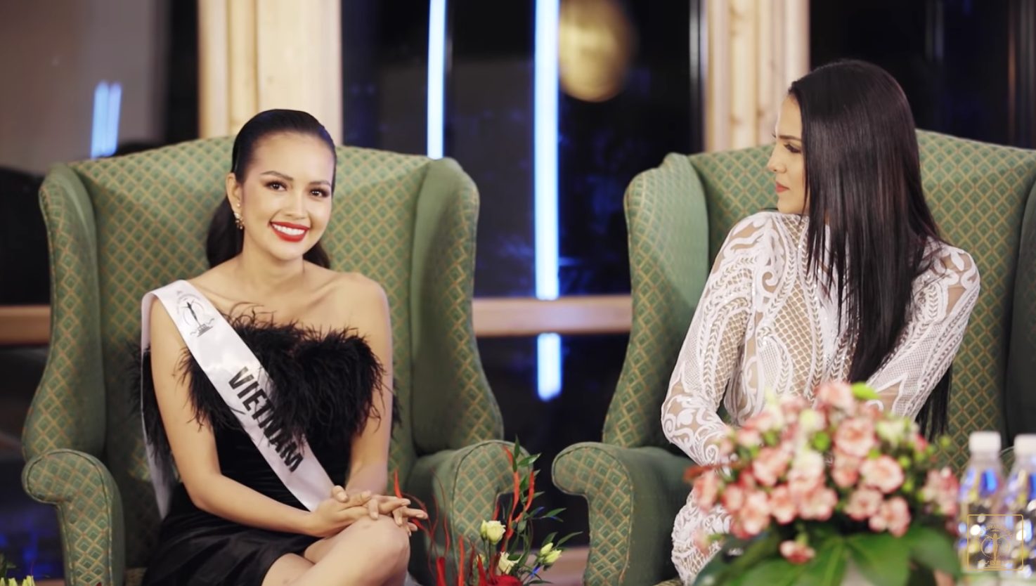 Phần trả lời ứng xử của Ngọc Châu trong phần thi SupraChat cùng đương kim hoa hậu Valeria.