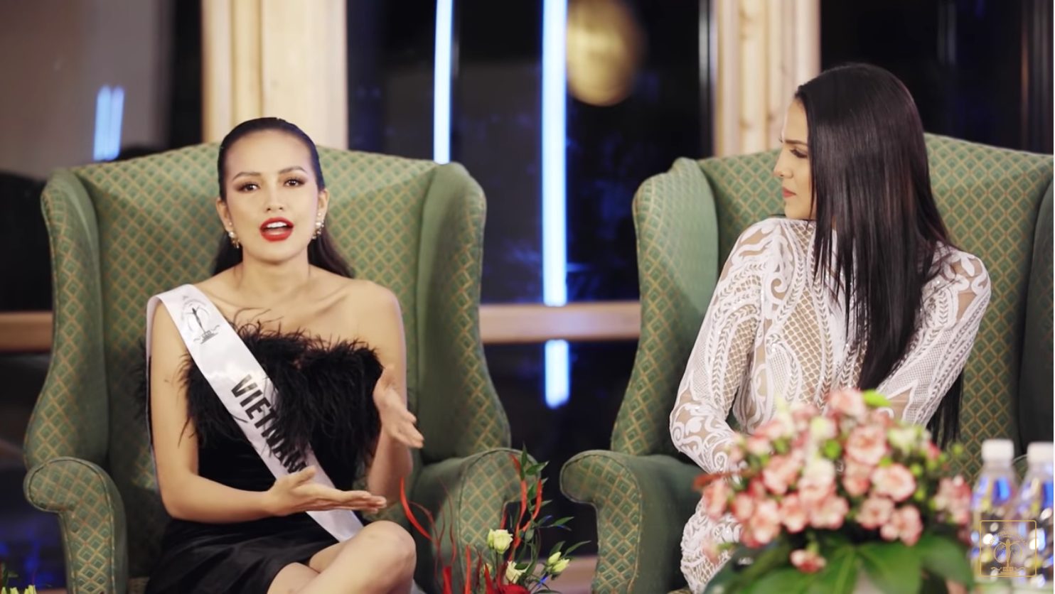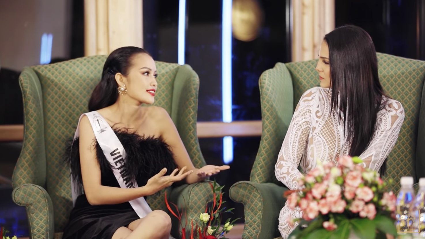 Tiếp tục giữ vững phong độ tại cuộc thi, Ngọc Châu là 1 trong những thí sinh nổi bật khi tham gia phần phỏng vấn quay hình với Miss Supranational 2018 - Valeria Vázquez. Xuất hiện với chiếc váy đen có đính kết lông vũ, Ngọc Châu khoe vẻ đẹp quý phái và thần thái quyền lực khi ngồi cạnh đương kim Hoa hậu Siêu quốc gia. Một lần nữa, người đẹp cho thấy sự khôn khéo trong việc xây dựng hình ảnh cùng gout thời trang sành điệu của mình.