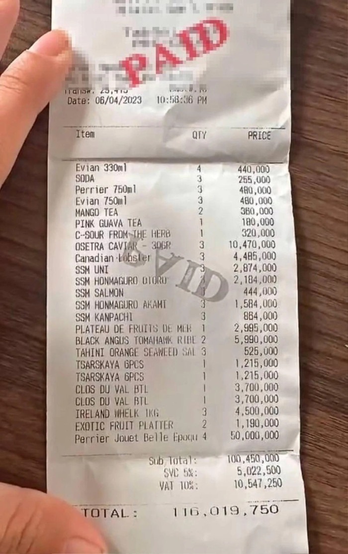 Trước đó, Ngọc Trinh từng gây sốc khi chia sẻ về một bữa ăn khác có chi phí lên đến 116 triệu đồng. Trong đoạn video được đăng tải, cô đã chọn nhà hàng cao cấp tại quận 1 với view toàn cảnh thành phố. Dù vậy, Ngọc Trinh thừa nhận các món ăn chỉ đạt 6-7 điểm và chưa có món nào thực sự xuất sắc. Chi phí của bữa ăn lên tới 116 triệu đồng, trong đó 60 triệu là tiền đồ ăn và hơn 50 triệu là tiền rượu. Cô cho biết: “Vui vẻ no nê xong tới lúc tính tiền thì 'hú hồn'. Tổng hóa đơn kèm thuế phí là 116 triệu. Trinh nghĩ đây là chỗ ăn trải nghiệm một lần cho biết, chứ không phải là địa điểm để gợi ý cho mọi người".