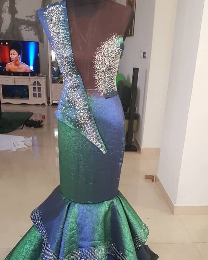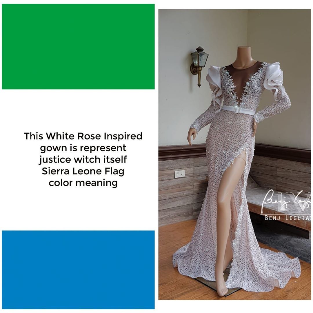 Mẫu váy dạ hội mang ý nghĩa của sắc cờ Sierra Leone.