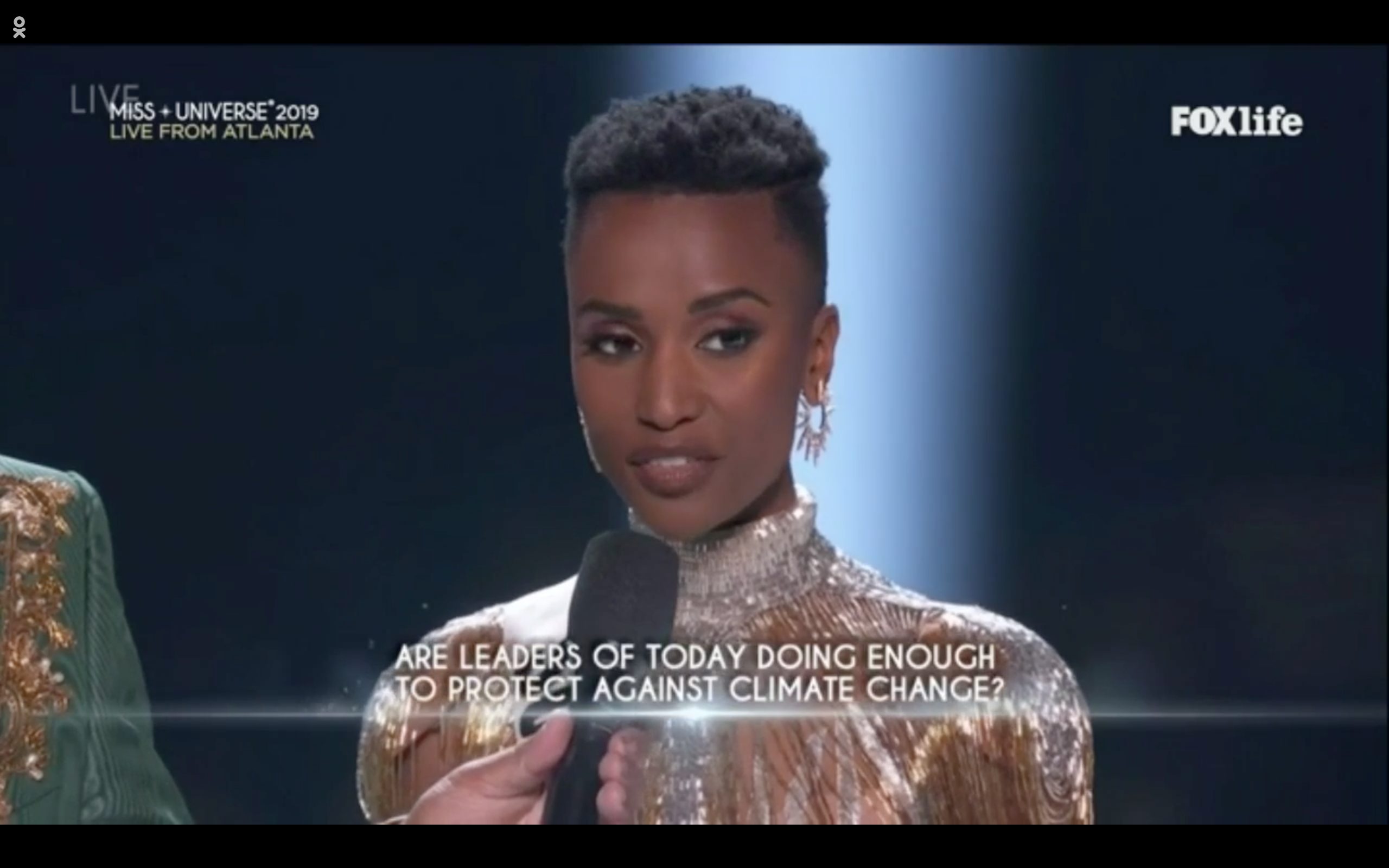 Với 5 câu hỏi ngẫu nhiên về những vấn đề chung của thế giới, Top 5 mỹ nhân đã bày tỏ quan điểm cá nhân đầy tự tin và bản lĩnh. Top 3 chung cuộc cùng tham gia phần thi ứng xử chung là các đại diện Mexico, Puerto Rico và Nam Phi.