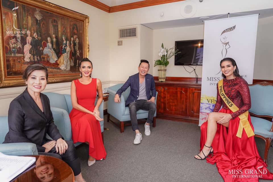 Chấm dứt chuỗi tin đồn Samantha Lo - đại diện của Philippines tại Miss Grand International 2019 bị tước vương miện và không thể đến Venezuela để tham gia cuộc thi do vấn đề làm giả hộ chiếu. Mới đây, cô nàng đã kịp có mặt để tham gia vòng thi phỏng vấn cùng chủ tịch tổ chức Hoa hậu Hòa bình Quốc tế - Nawat Itsaragrisil.