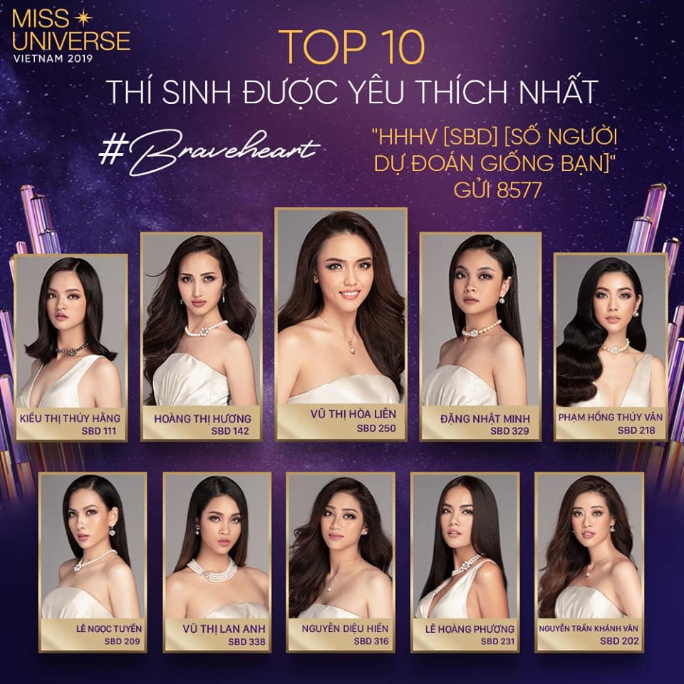 Mới đây, trang chủ Miss Universe Vietnam 2019 vừa đăng tải bảng xếp hạng giải Thí sinh được yêu thích nhất với kết quả bất ngờ, Thúy Vân bị “vắng mặt” trong Top 3 bình chọn và chỉ nằm ở vị trí thứ 5. Mặc dù trong lần cập nhật số lượng bình chọn gần nhất, Thúy Vân được xếp hạng cao nhất nhưng hiện nay, cô nàng đã bị thay thế bởi người đẹp Vũ Thị Hoà Liên - một trong những gương mặt mới và có triển vọng tại cuộc thi năm nay.