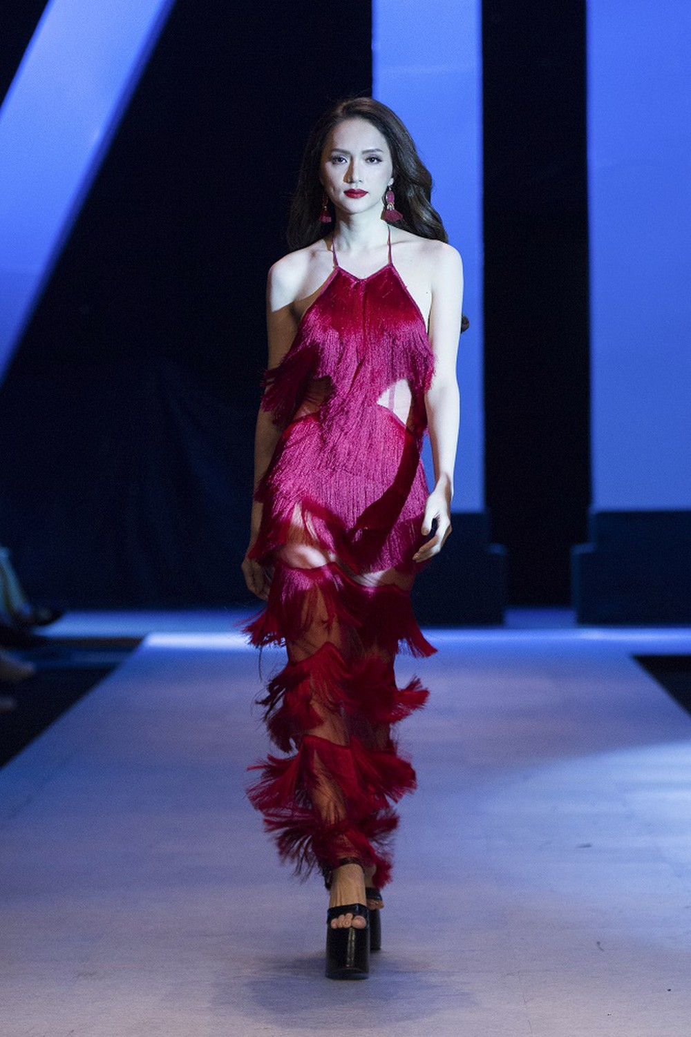 Khán giả đặc biệt ngưỡng mộ Hương Giang với khả năng trụ vững trên những đôi giày cao gót và bước đi những bước catwalk đầy thần thái. Điều này không chỉ giúp người đẹp trông cao hơn mà còn thêm phần uyển chuyển và mềm mại khi trình diễn.