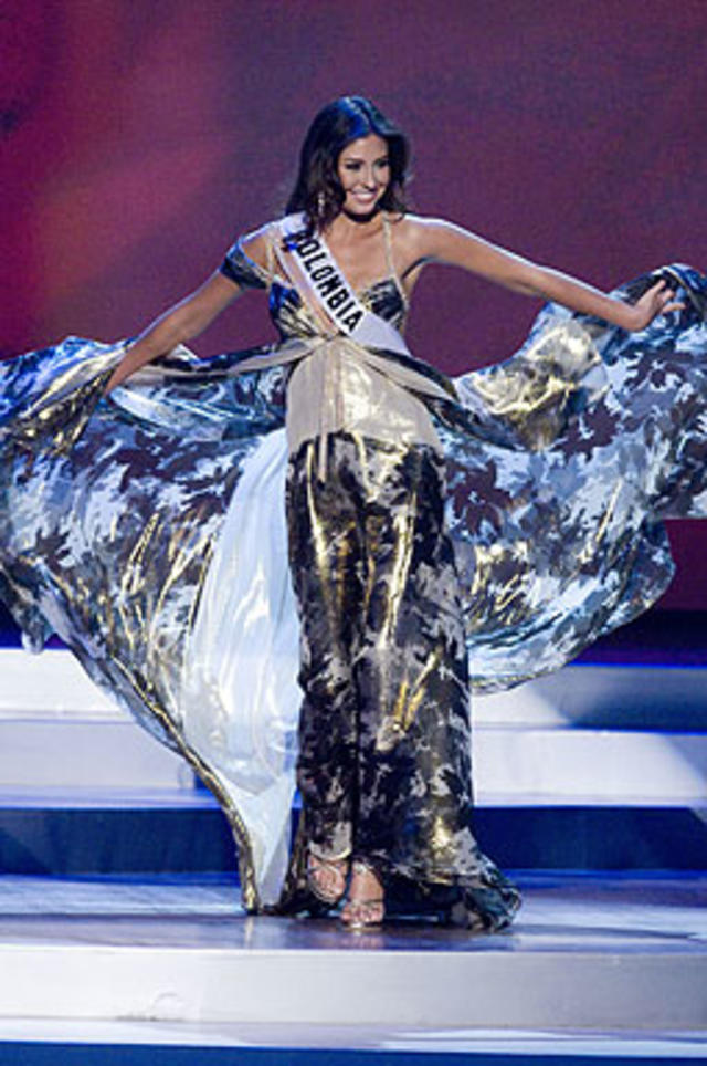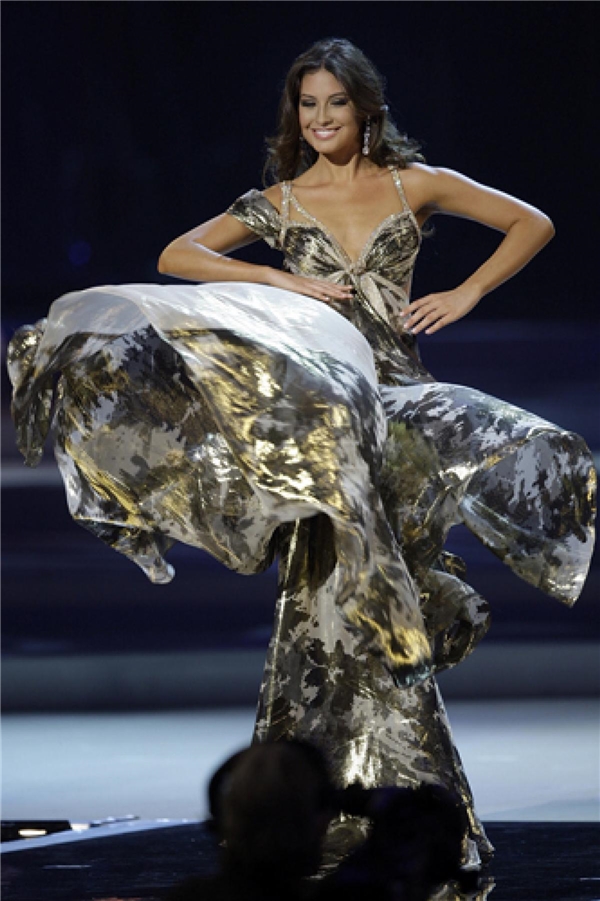 Dayana Mendoza - Miss Universe 2008 và “vũ điệu váy vàng” của cô nàng đã để lại một dấu ấn khó phai đối với người hâm mộ các cuộc thi sắc đẹp. Từng chuyển động thướt tha của hình thể kết hợp với những sải chân nhịp nhàng đã tạo nên màn xoay váy đẹp mắt như một đóa hoa nở rộ trên sân khấu.