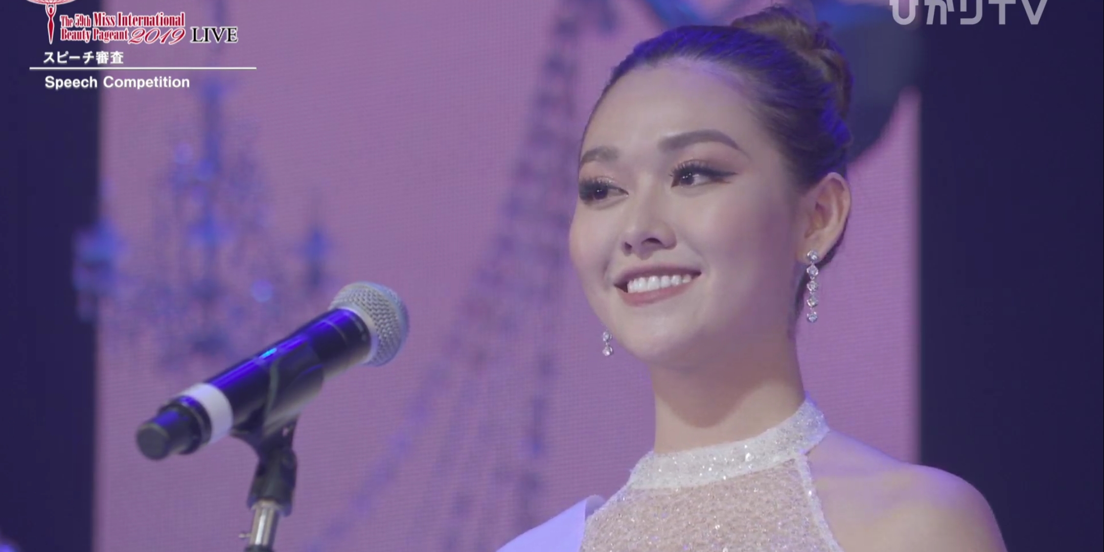 Với câu hỏi: “Là Hoa hậu Quốc tế, bạn định nghĩa như thế nào về tinh thần cổ vũ cho phụ nữ?“. Đại diện Việt Nam chia sẻ: “Nụ cười chính là thứ ngôn ngữ kì diệu mà bất cứ ai dù thuộc bất kì quốc gia nào cũng đều hiểu được.