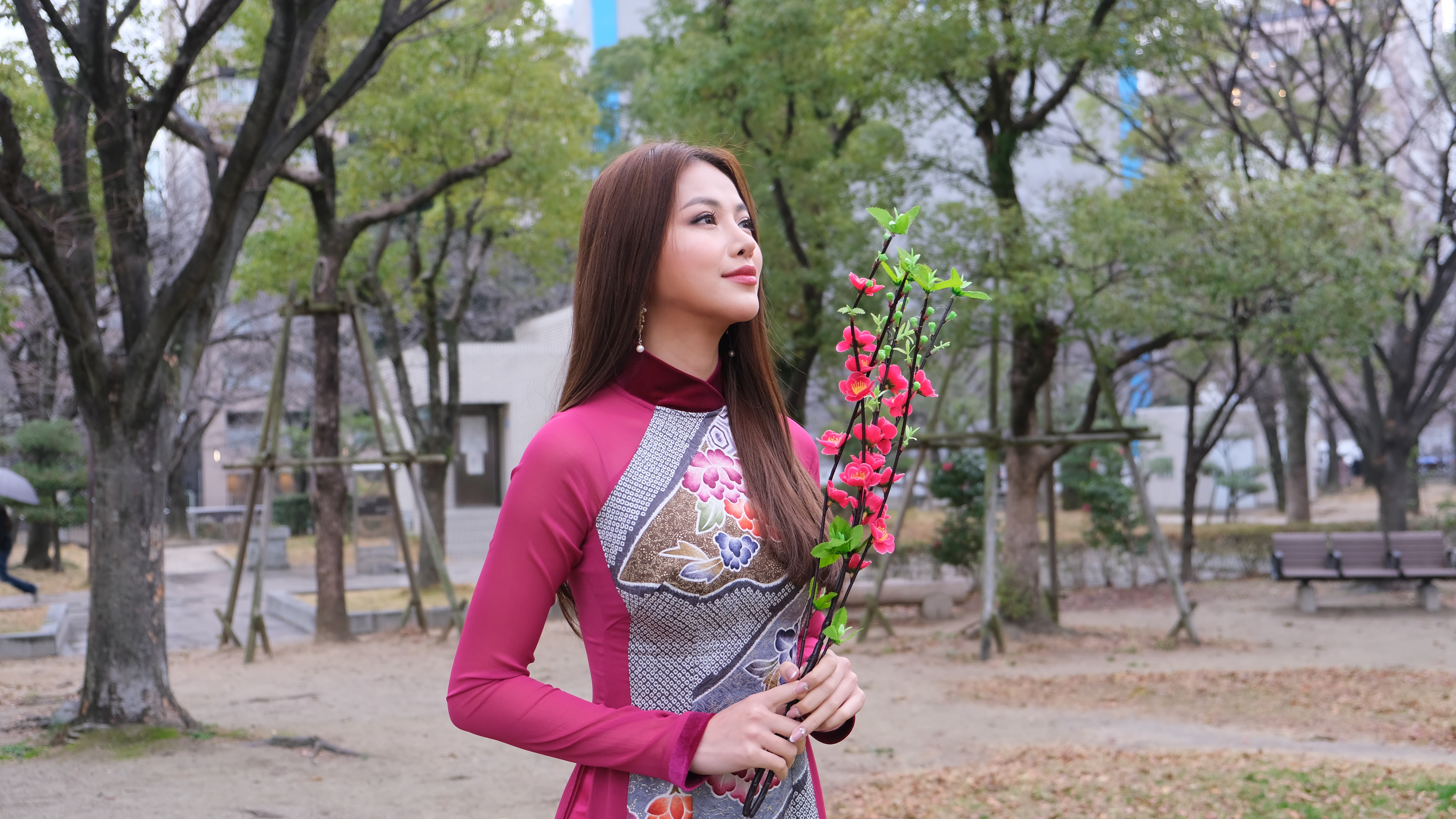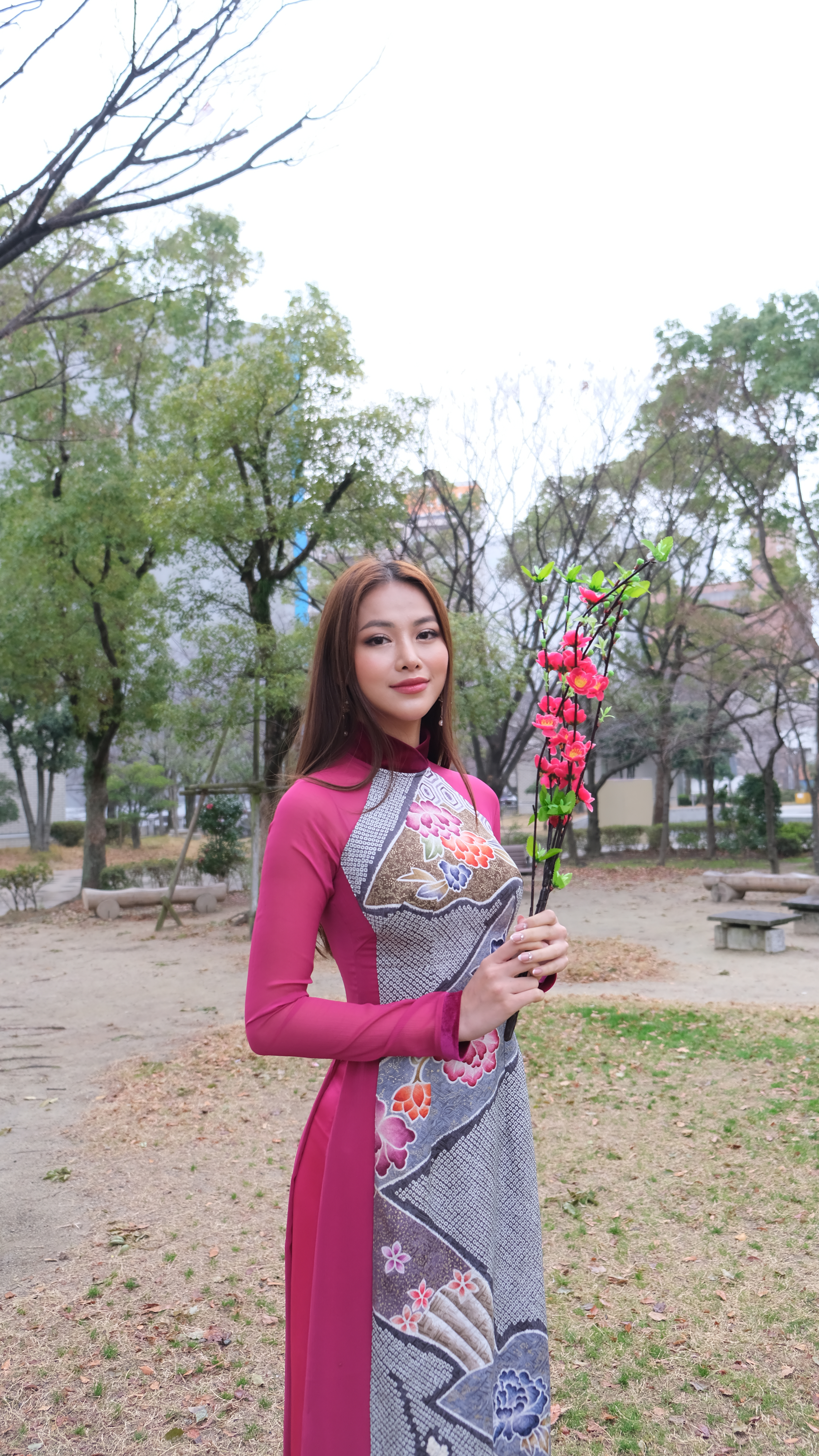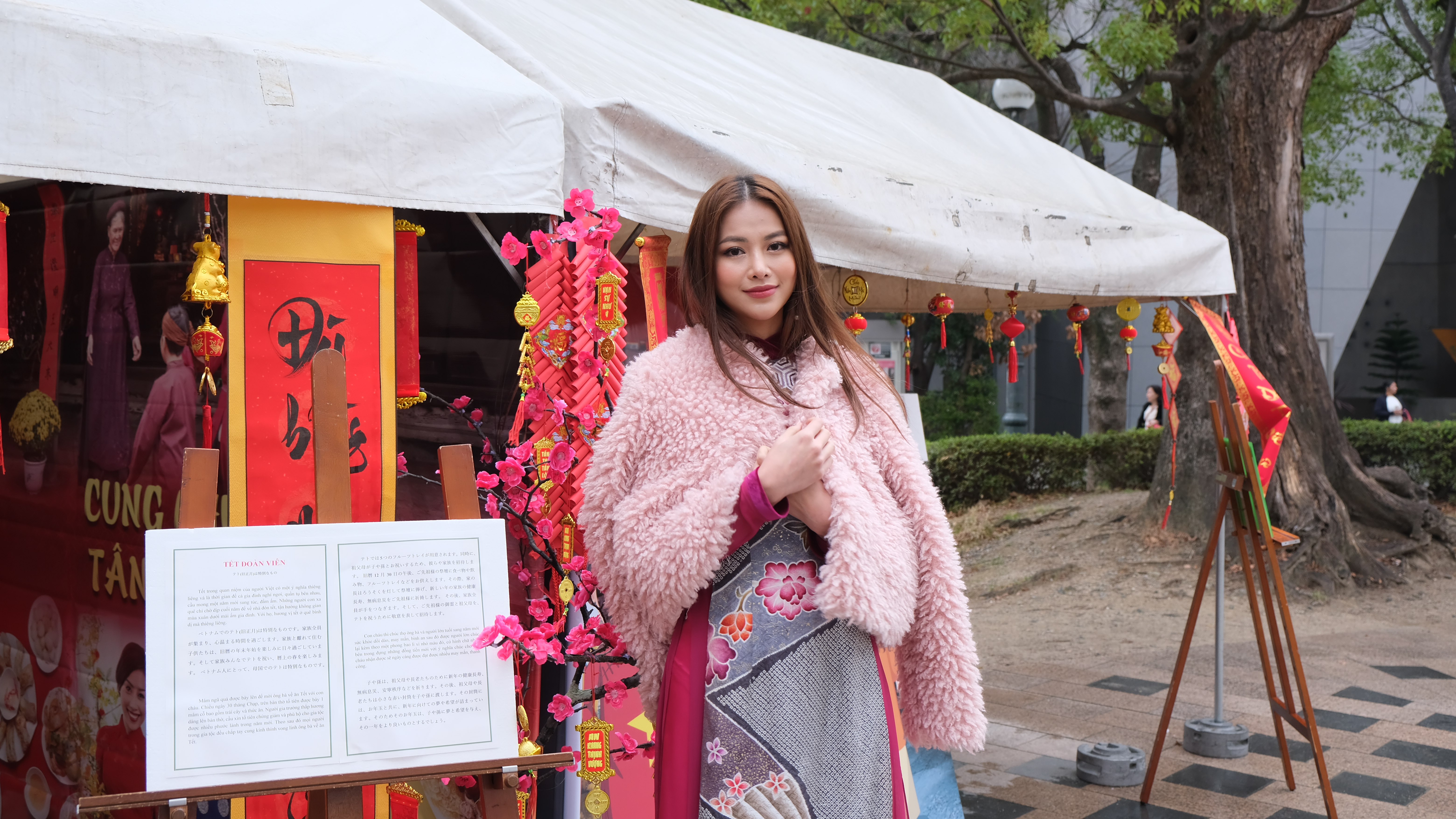Trong khuôn khổ Lễ hội Tết Việt 2020 tại Nhật Bản, Miss Earth Phương Khánh xuất hiện đẹp thanh thoát và rạng rỡ với tà áo dài truyền thống. Dù điều kiện thời tiết không mấy thuận tiện nhưng người đẹp Bến Tre vẫn sôi nổi tham gia vào các hoạt động với bà con kiều bào.