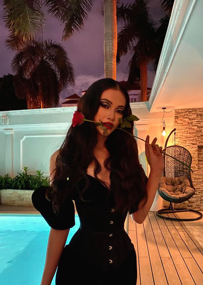 Dù là hoa hậu đã hết nhiệm kì nhưng cô nàng vẫn không quên giữ cho mình vòng eo thon gọn và hình thể quyến rũ nhất. Hoá thân tham dự lễ hội Halloween, với mái tóc xoăn đánh phồng, son môi đỏ, mắt khối ấn tượng, có lẽ Phương Khánh chính là “Nữ chúa ma cà rồng” xinh đẹp nhất mùa lễ hội này.