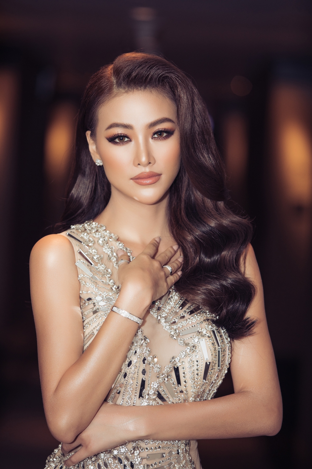 Xuất hiện đầy lộng lẫy với bộ váy bạc với những viên đá được đính kết tinh xảo, Hoa hậu trái đất 2018 nhanh chóng thu hút được giới truyền thông. Thiết kế xuyên thấu này vừa tôn lên được sự quyến rũ của đường cong nàng hậu vừa khiến Phương Khánh vô cùng kiêu sa.