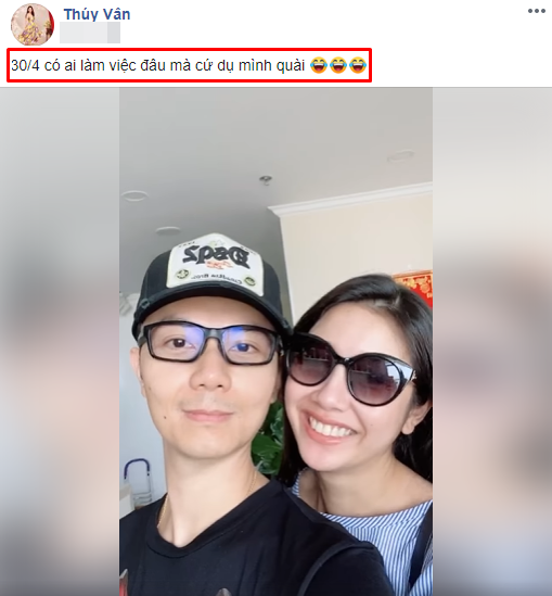 Thúy Vân chia sẻ: “30/4 có ai làm việc đâu mà cứ dụ mình hoài”. Sau khi xem xong đoạn video với màn đối đáp vui nhộn của cặp đôi trai tài gái sắc. Khi được bạn trai đại gia hỏi tới 3 lần về việc có lên phường không, Thúy Vân trả lời là có. Dòng thông tin này được fan tin chắc rằng á hậu 2 Hoa hậu Hoàn vũ Việt Nam và bạn trai đang háo hức lên phường để hoàn thành thủ tục đăng kí kết hôn.
