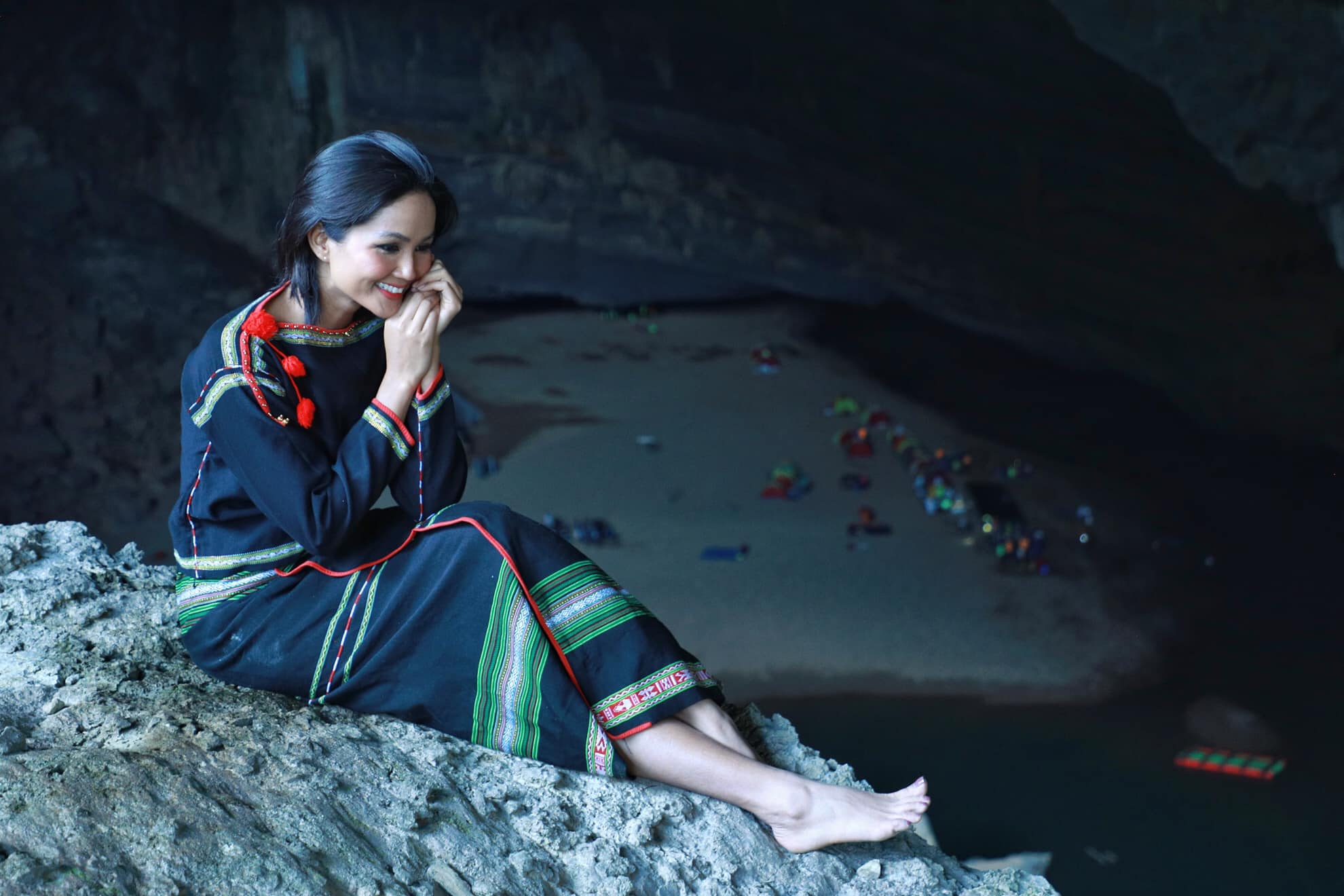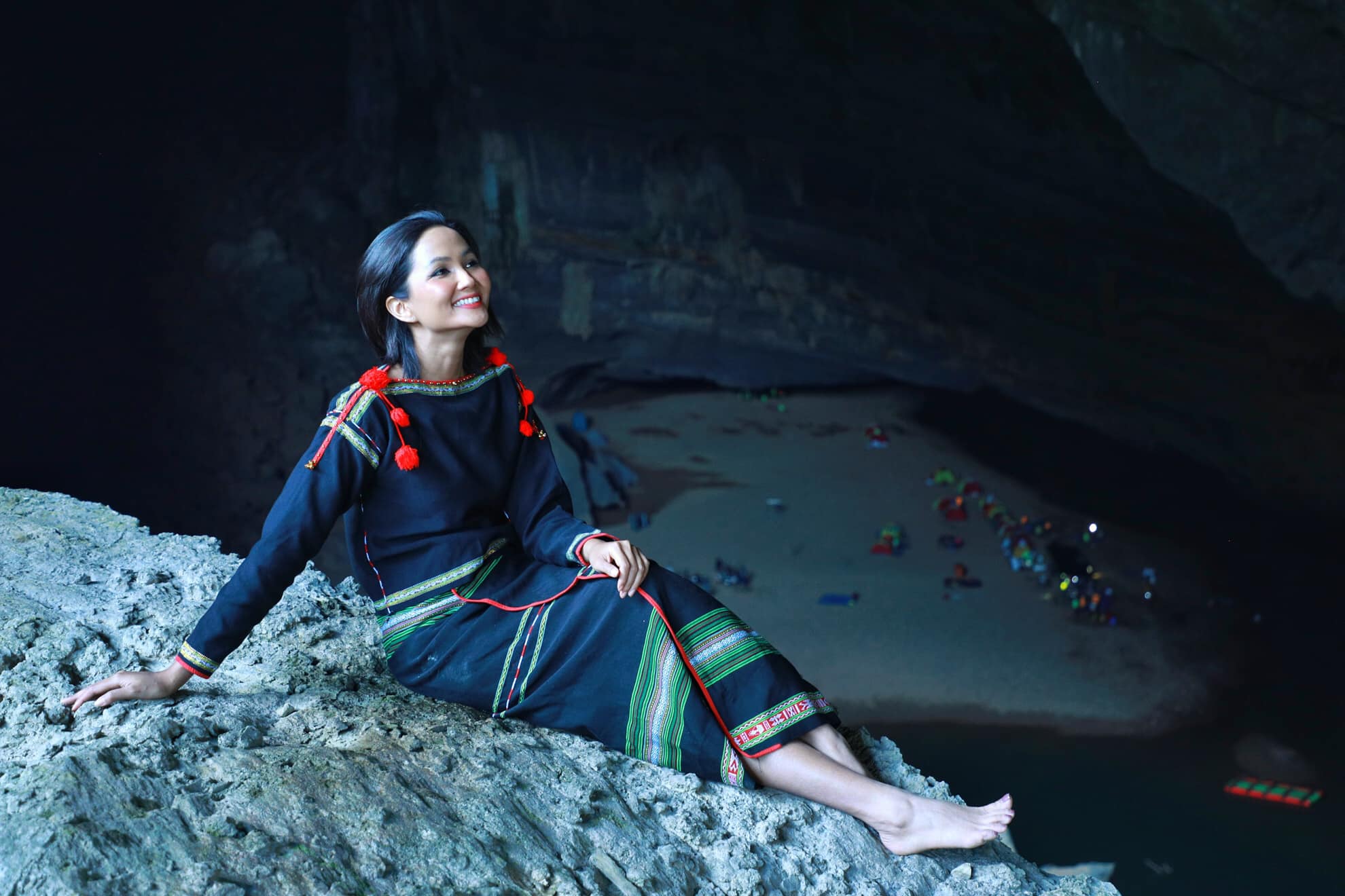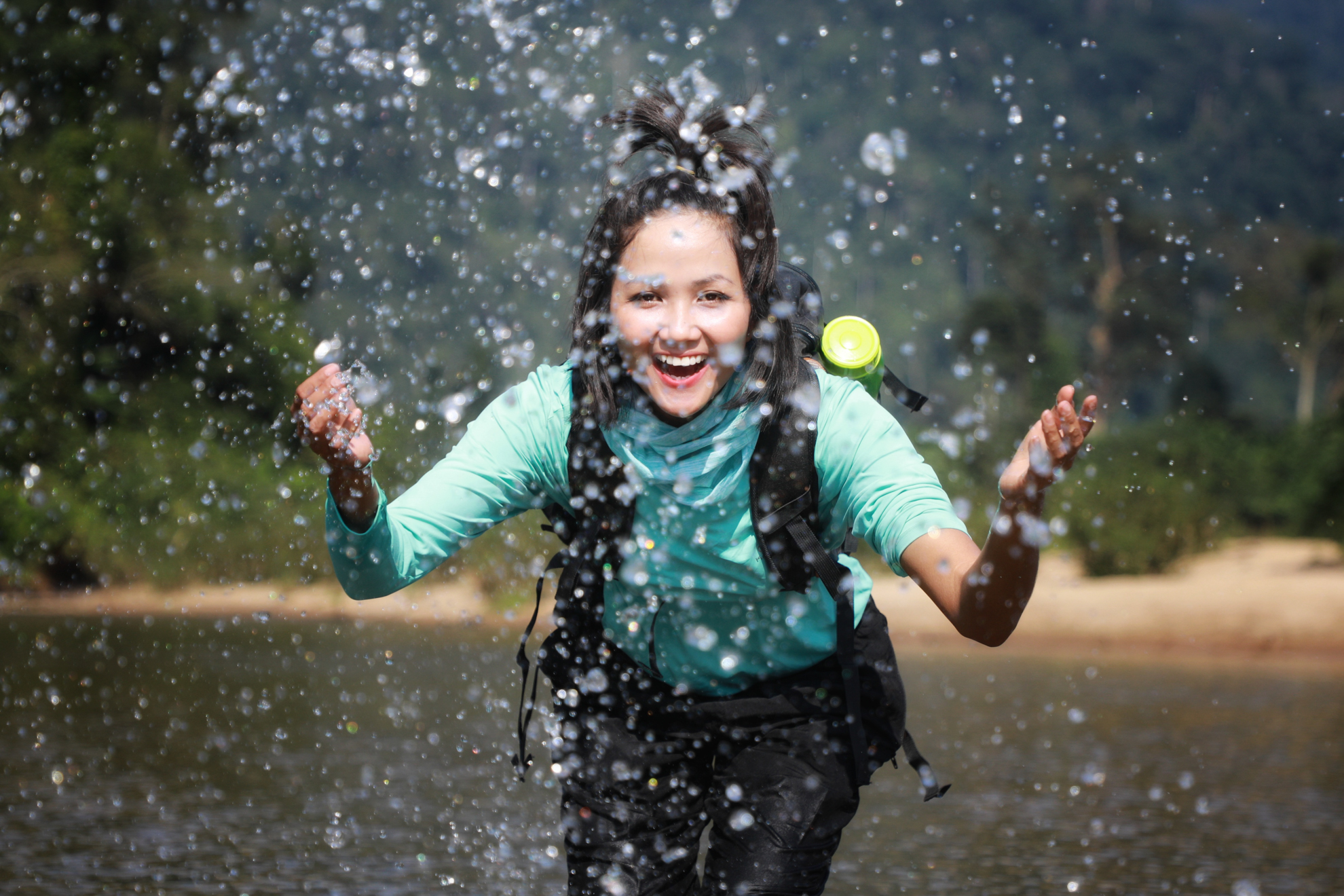 Trong khung cảnh thiên nhiên xanh ngát, H'Hen Niê tươi tắn thể hiện niềm vui sướng vì sau một khoảng thời gian dài, chỉ tập trung lao động, cuối cùng, cô nàng đã tự dành tặng cho bản thân 1 chuyến đi thám hiểm tuyệt vời.