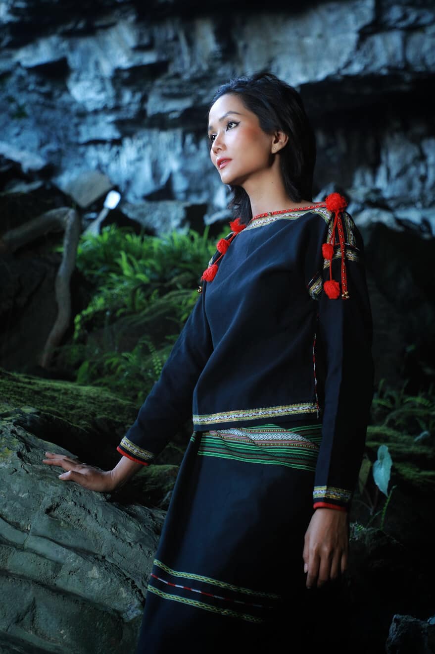 Hoa hậu H'Hen Niê mặc trang phục dân tộc Ê Đê hòa mình với cảnh vật núi non hùng vĩ.