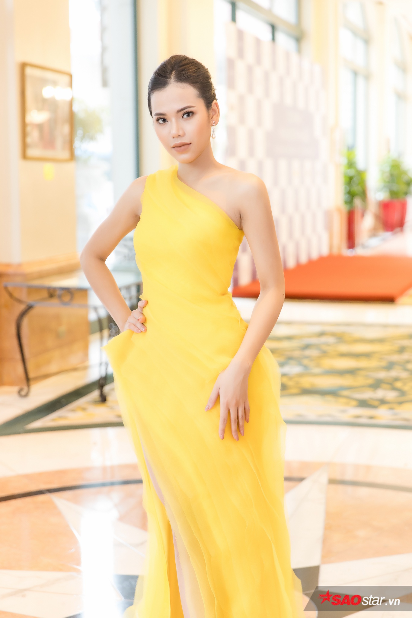 Minh Tâm - cô gái đến từ Hà Nội gây ấn tượng với nhiều người tại vòng sơ khảo Miss Universe Vietnam 2019 khu vực phía Bắc bởi vóc dáng ấn tượng, khuôn mặt đẹp cùng với chiếc váy vàng đầy kiêu sa.