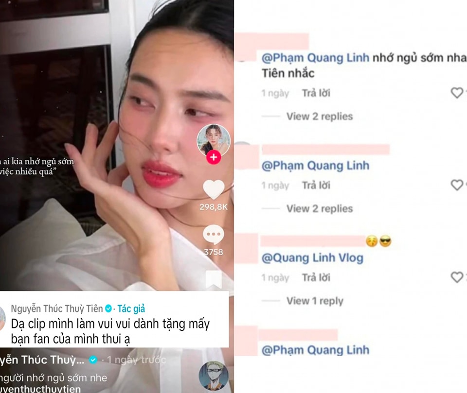 Cách đây không lâu, Thùy Tiên bất ngờ đăng tải đoạn clip nhắn gửi "ai kia nhớ ngủ sớm". Động thái này nhanh chóng nhận được sự quan tâm của đông đảo người hâm mộ. Không những vậy, nhiều người còn đồng loạt nhắc tên Quang Linh Vlogs và "tag tên" anh chàng ngay dưới phần bình luận.