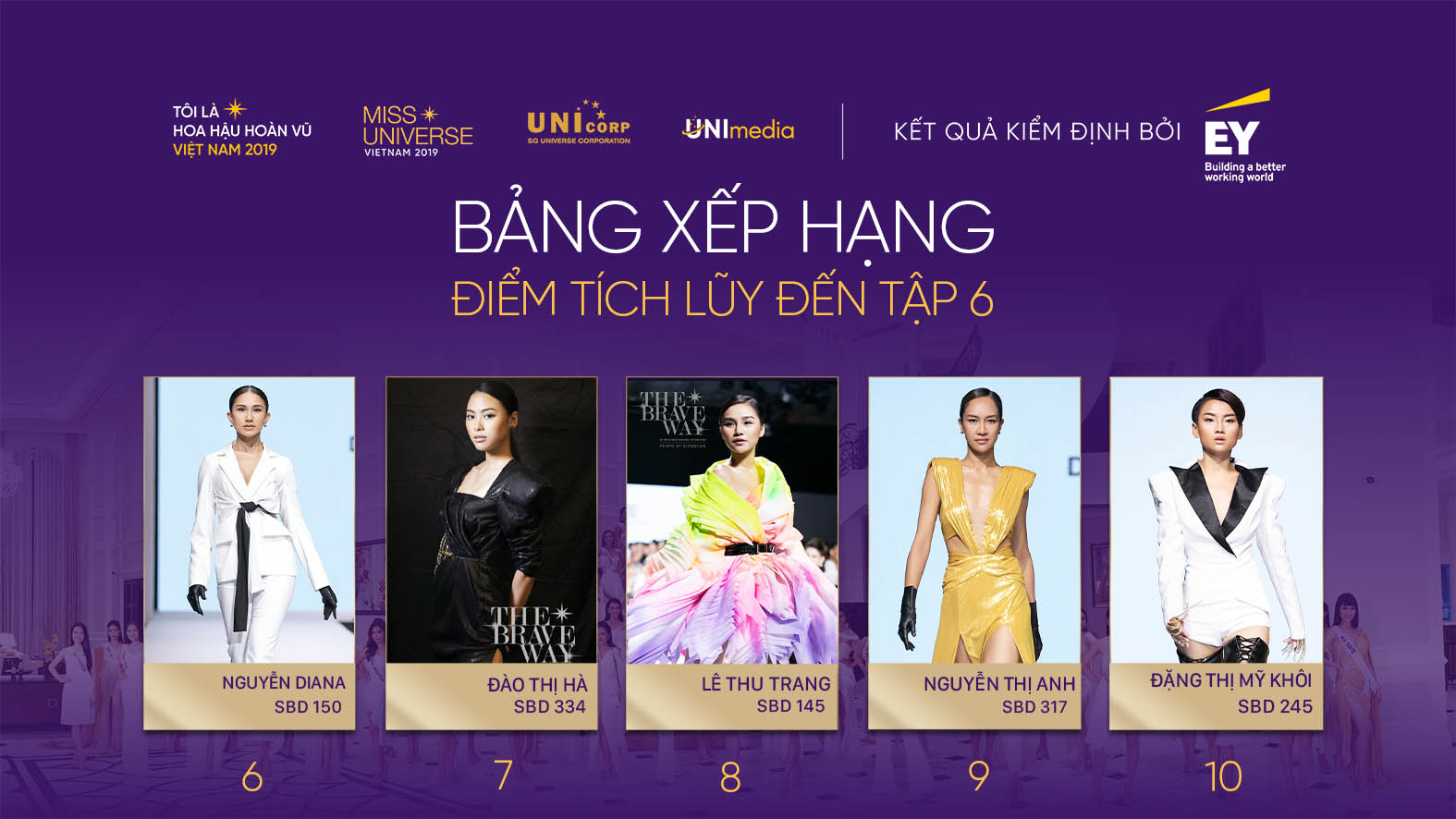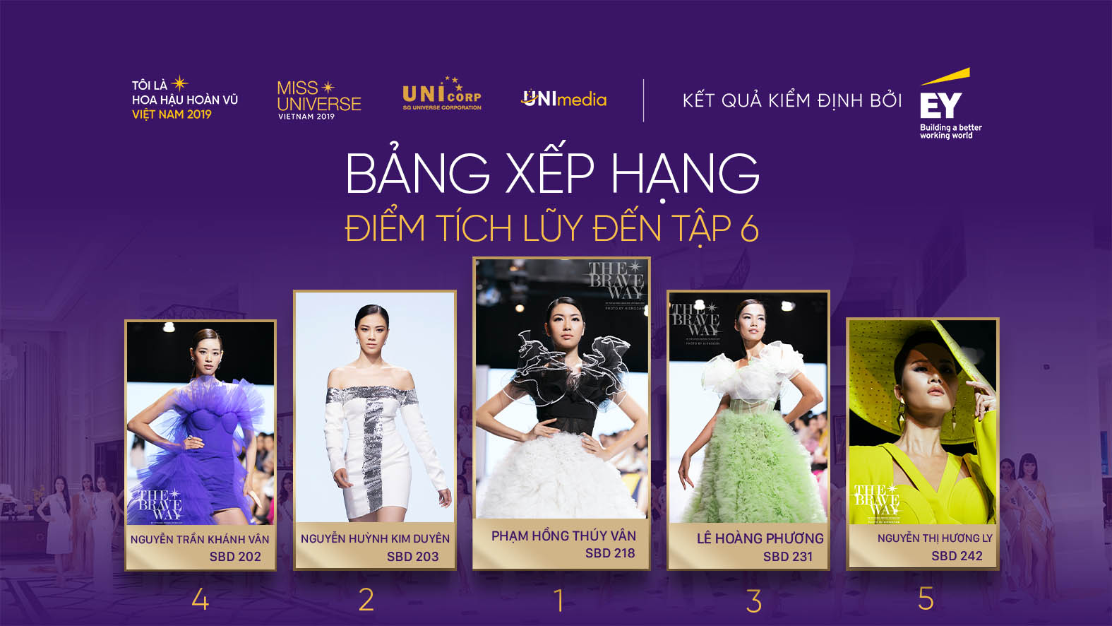 Sau 3 tập liên tiếp, Top 5 người đẹp xuất sắc nhất cuộc thi vẫn là: Thúy Vân, Kim Duyên, Hoàng Phương, Khánh Vân và Hương Ly. Đây cũng là 5 gương mặt được những người theo dõi cuộc thi đánh giá cao và dành niềm tin sẽ chạm tay đến vương miện Brave Heart.