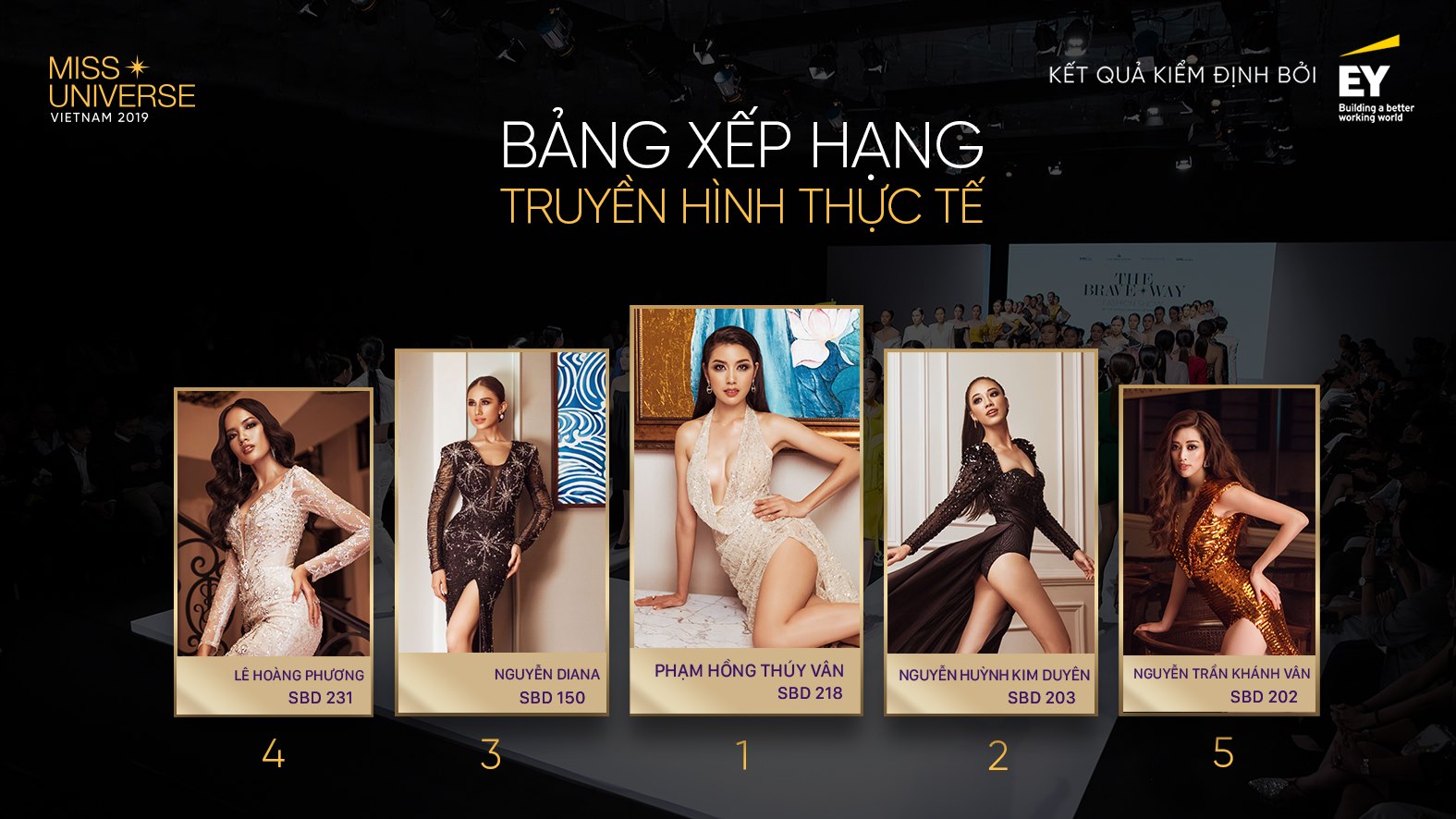 Thúy Vân đứng đầu bảng điểm xếp hạng chương trình Tôi là Hoa hậu Hoàn vũ Việt Nam 2019.