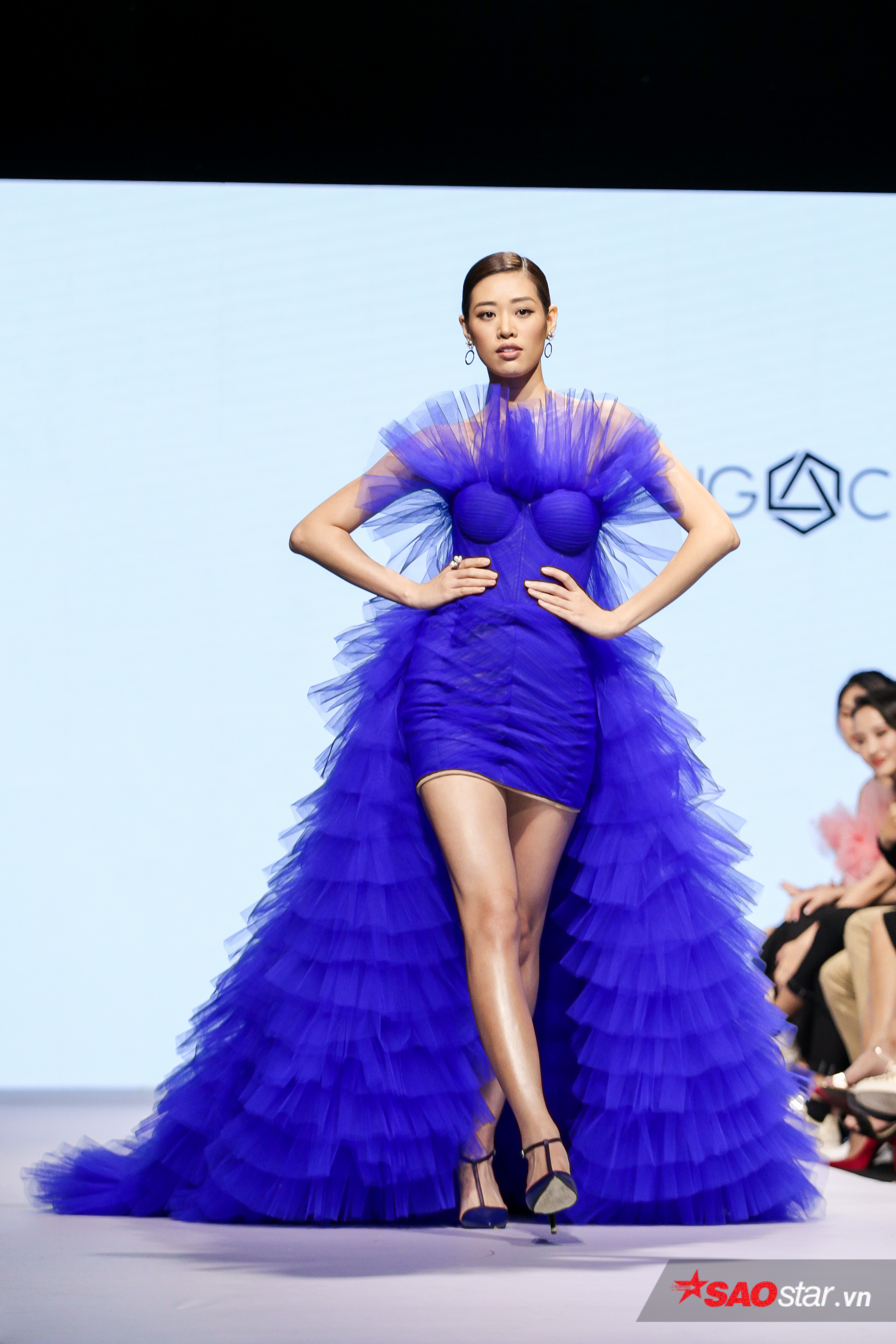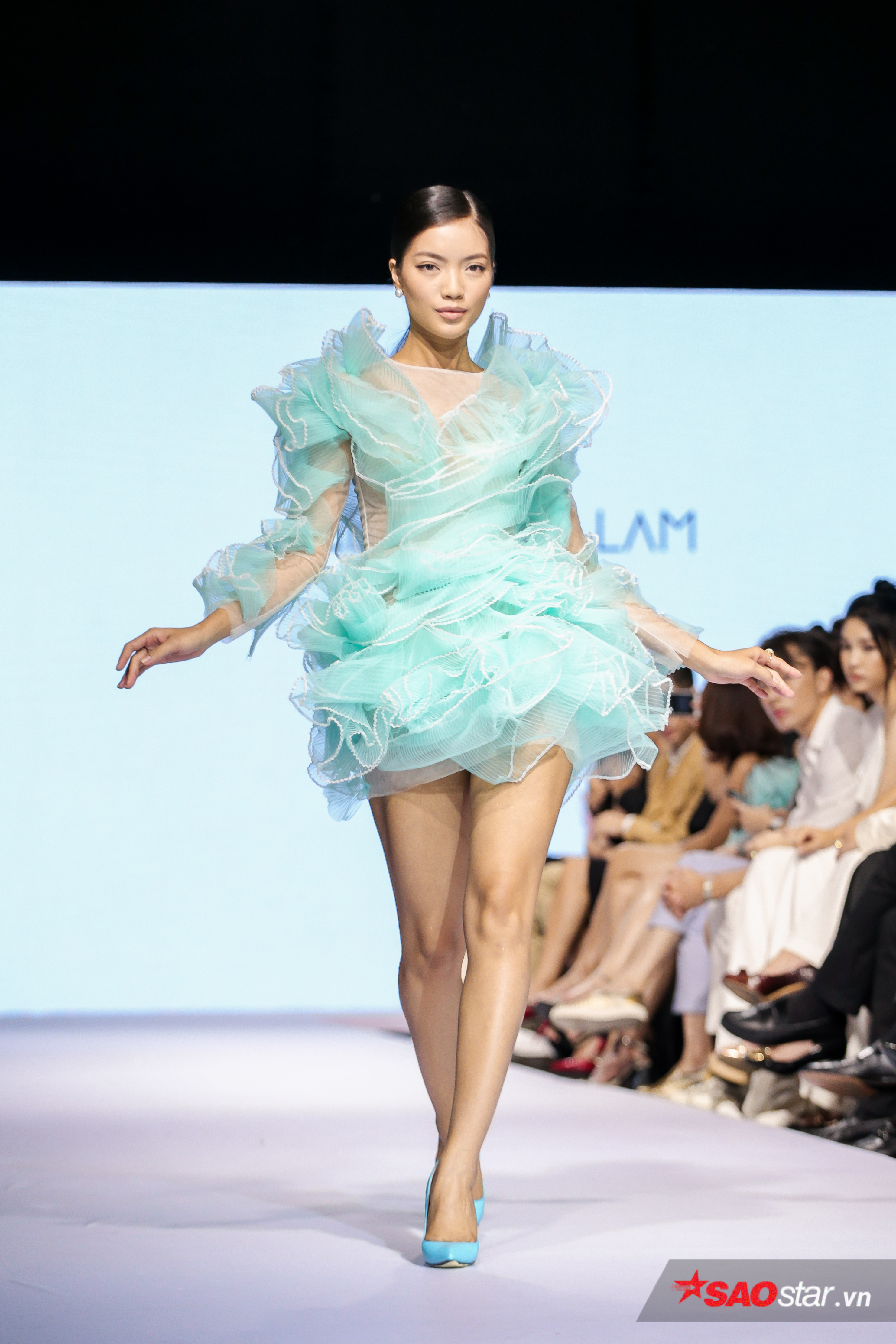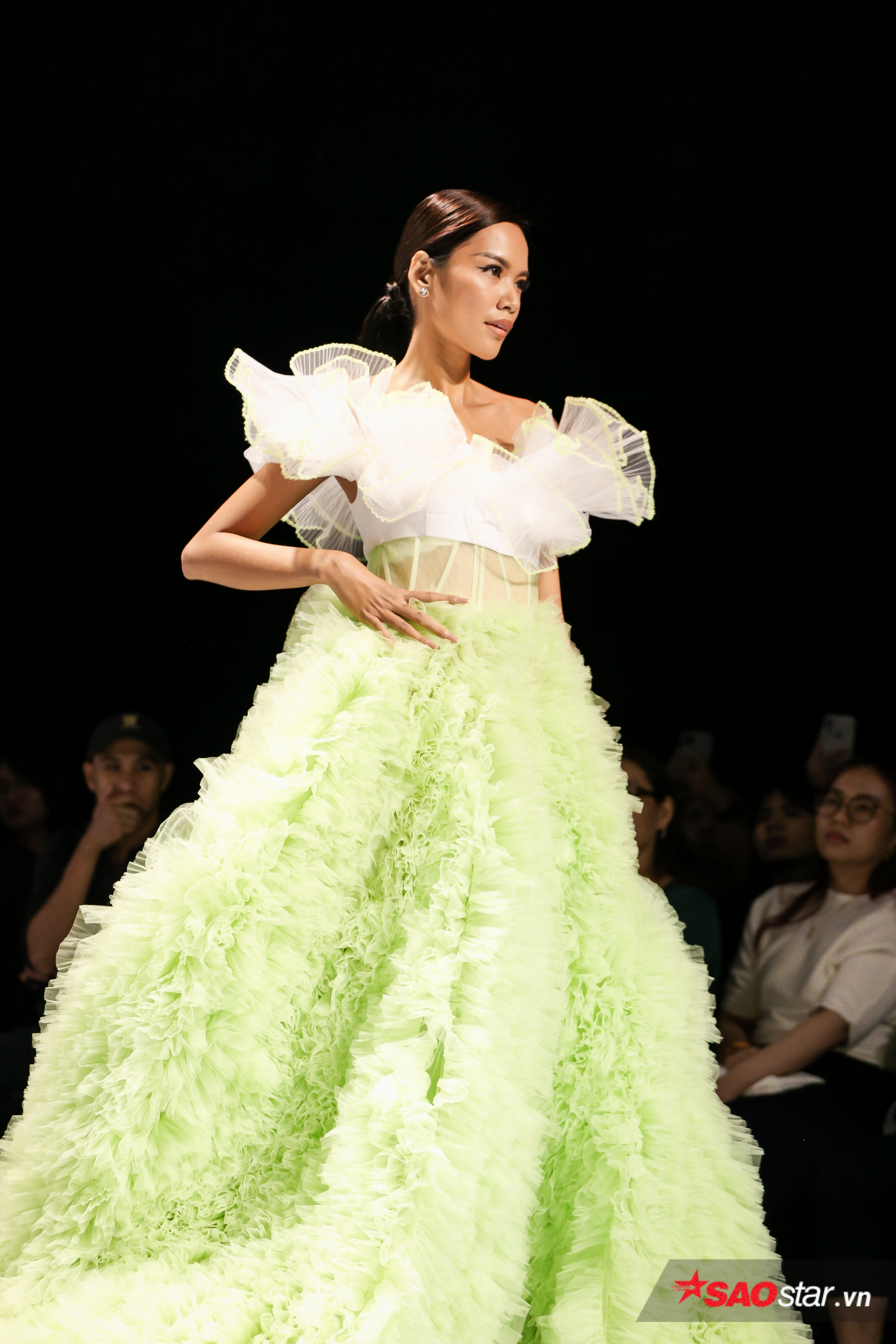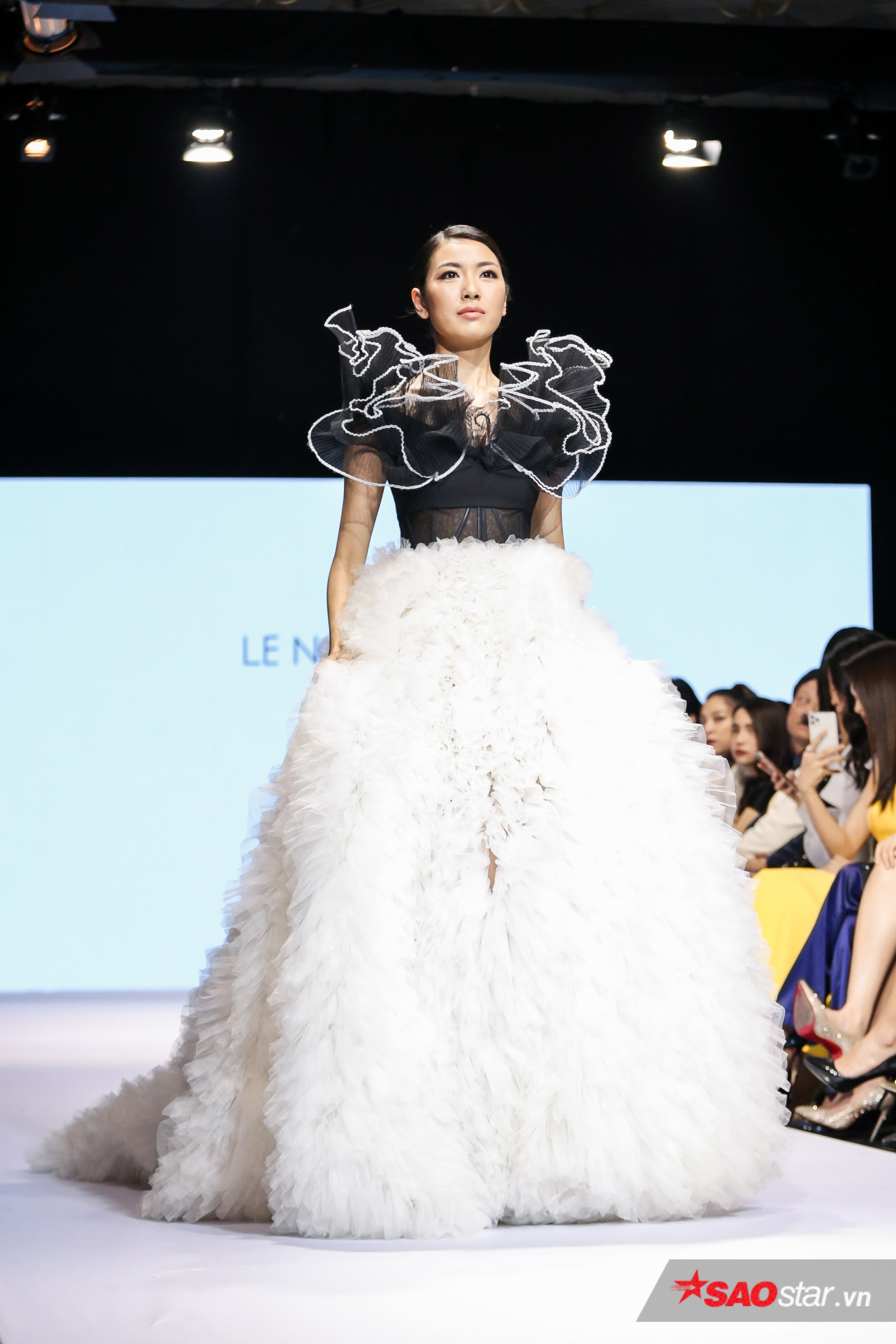 Làm First Face cho BST của NTK Lý Giám Tiền, Á hậu Quốc tế 2015 tiếp tục diễn Vedette cùng Hoàng Phương trong BST của NTK Lê Ngọc Lâm.