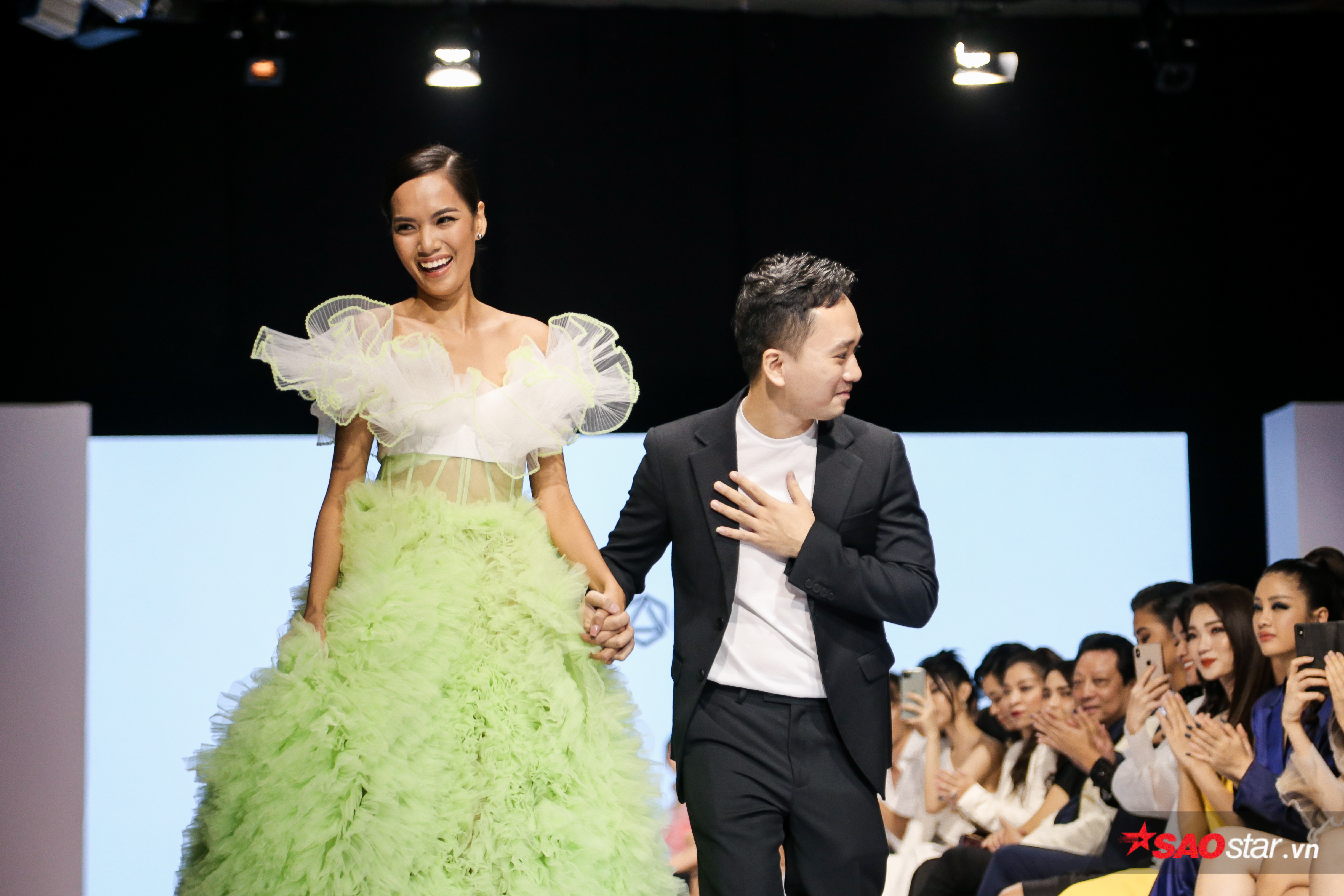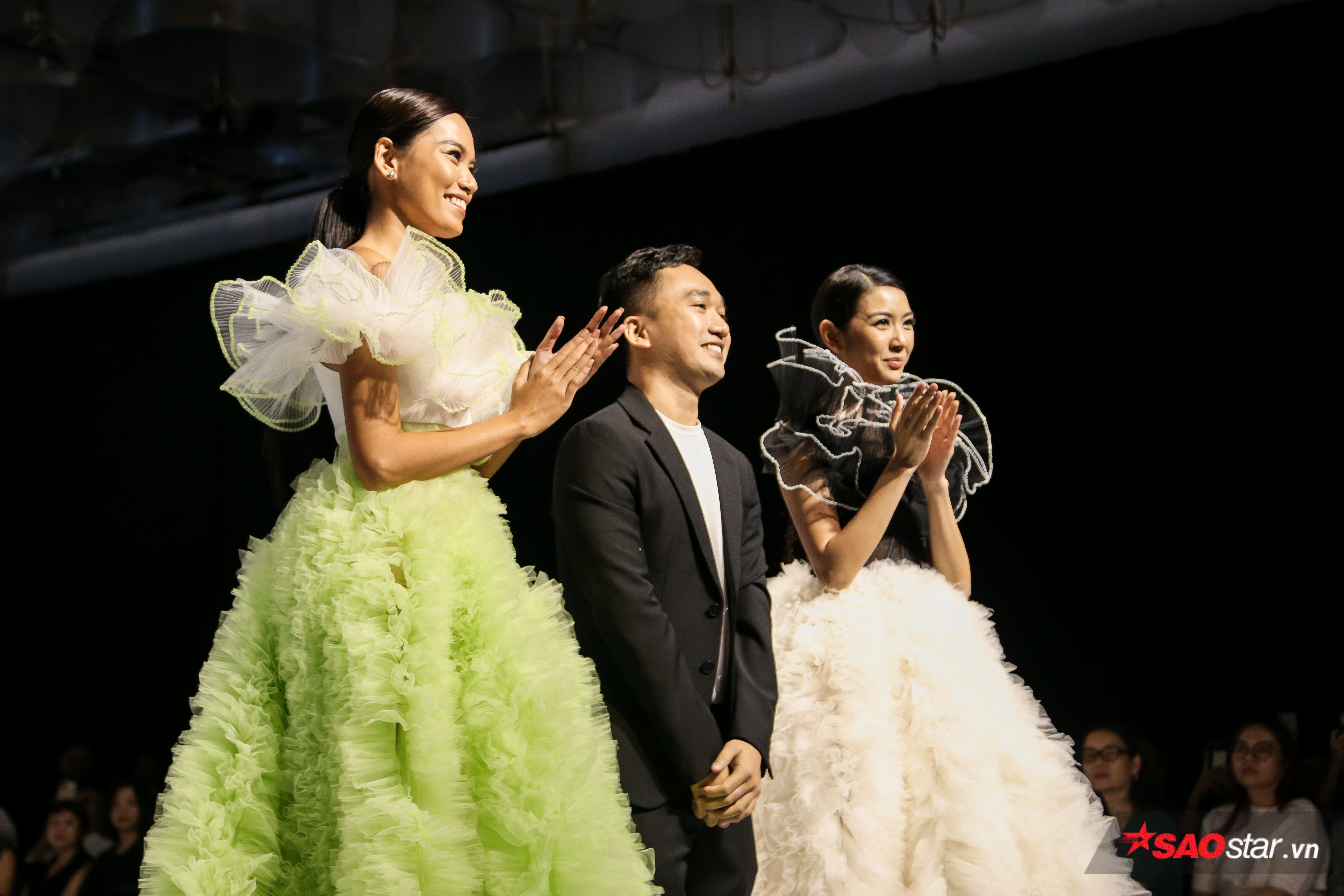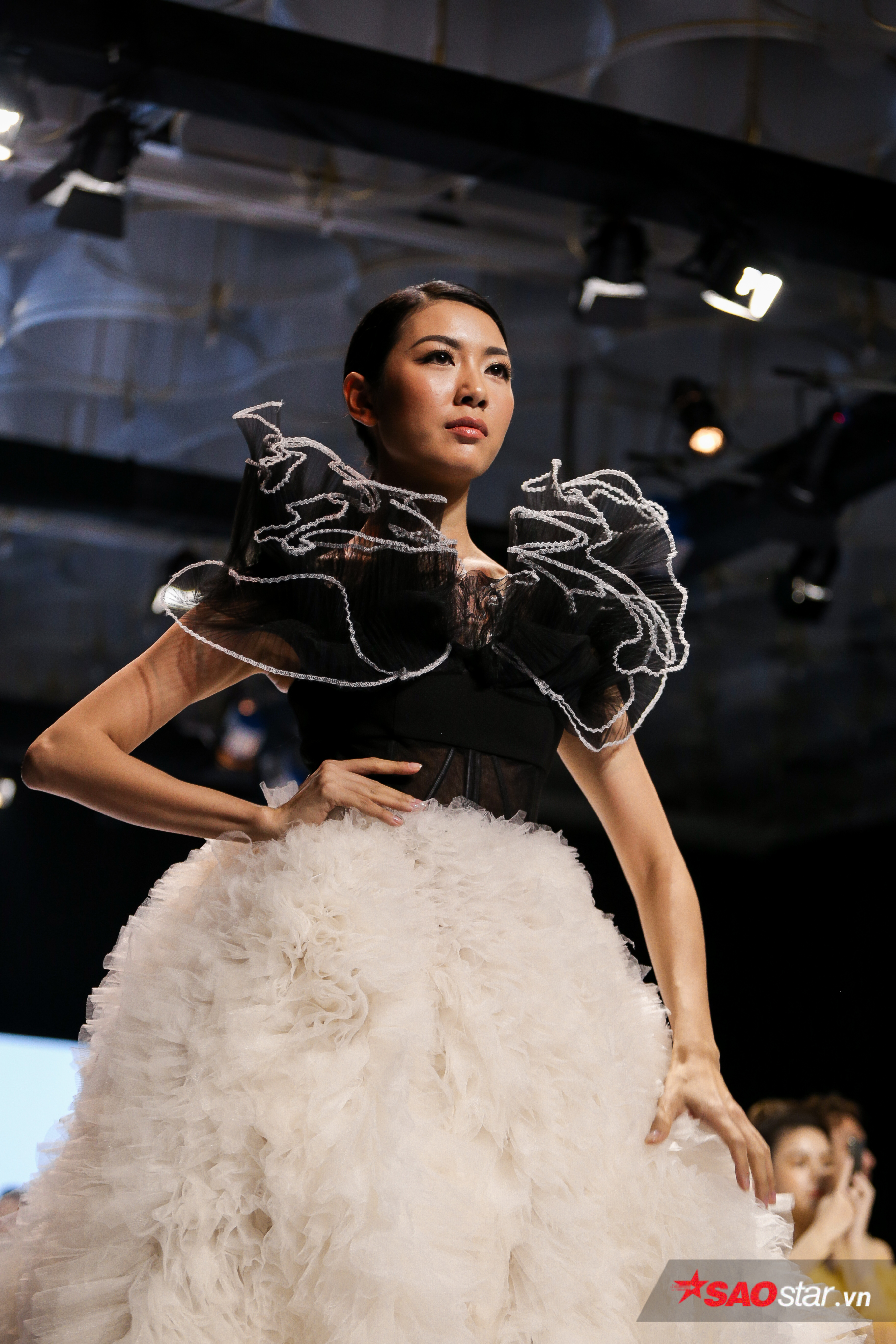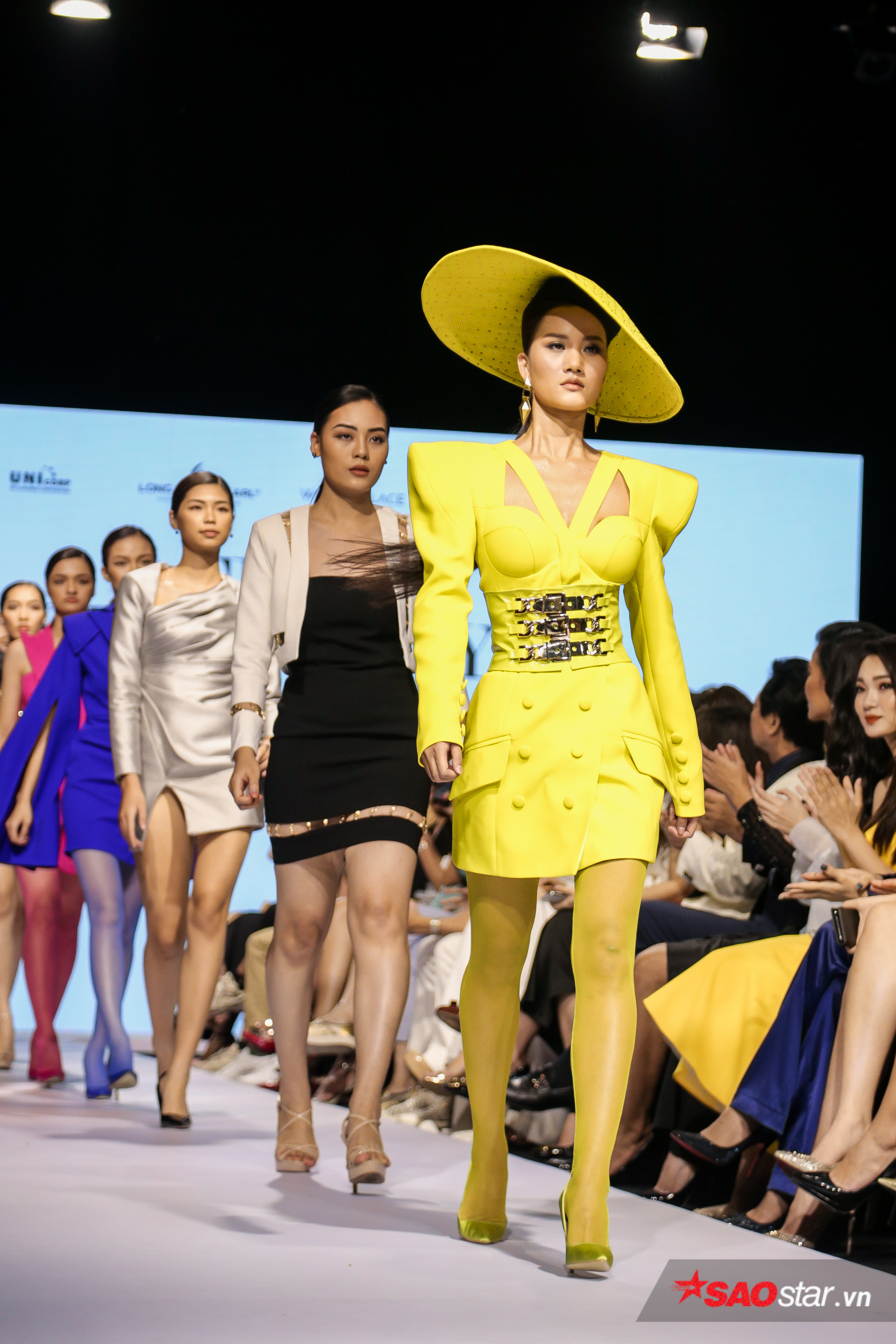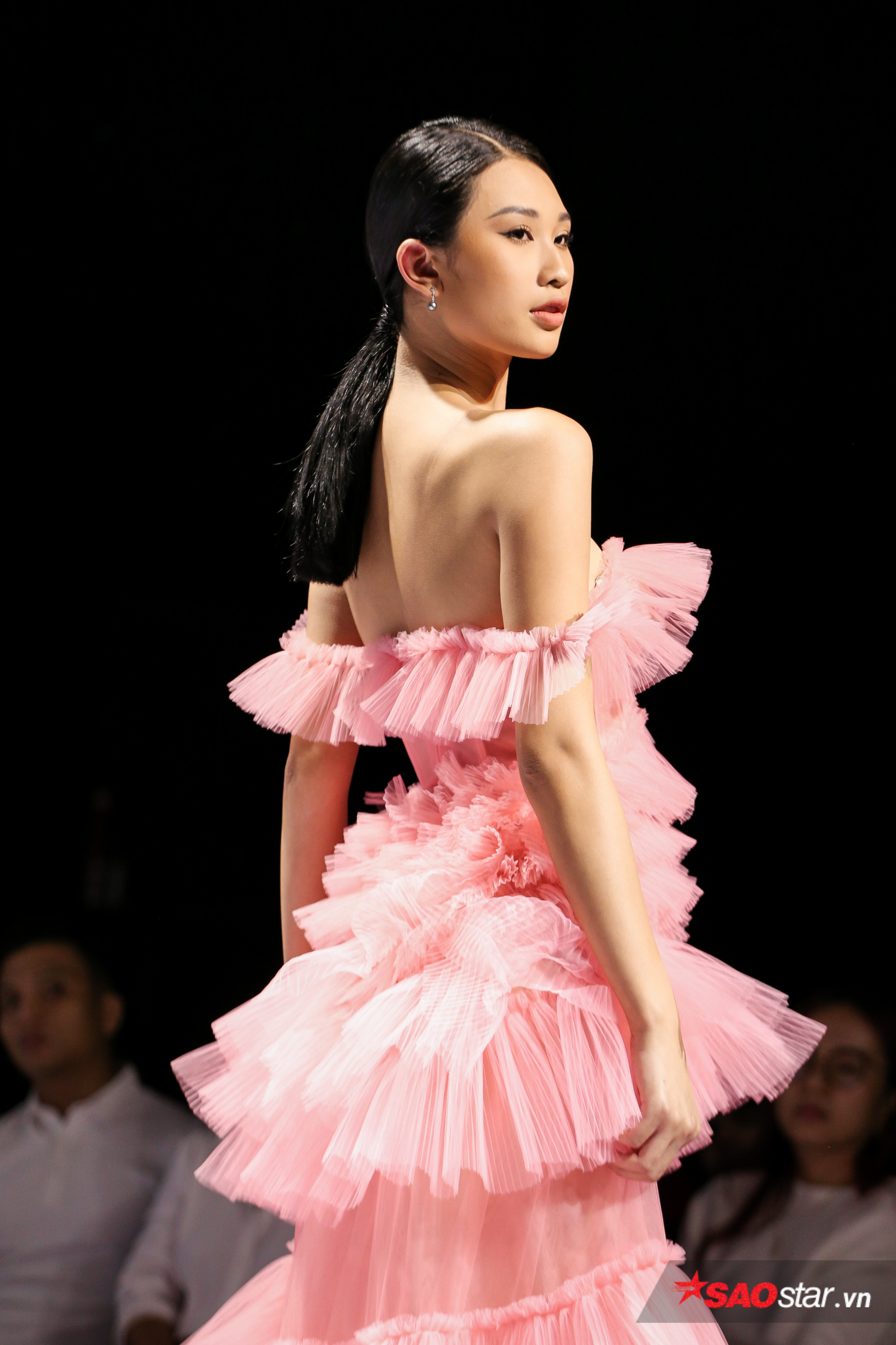 Làm First Face cho BST của NTK Lý Giám Tiền, Á hậu Quốc tế 2015 tiếp tục diễn Vedette cùng Hoàng Phương trong BST của NTK Lê Ngọc Lâm.