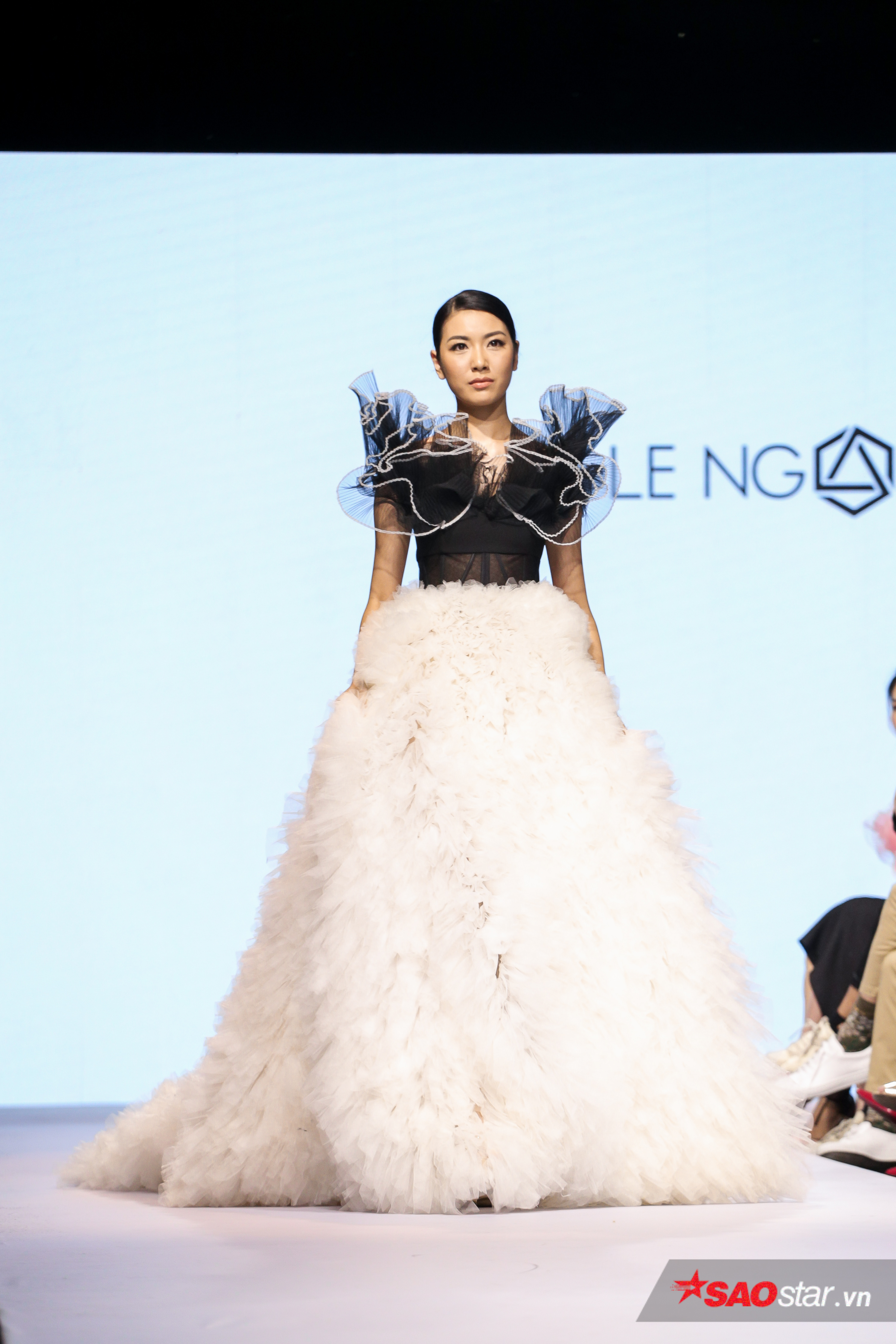 BST “BLOOMING FUNGI” của NTK Lê Ngọc Lâm lấy cảm hứng từ sự nở rộ của thiên nhiên, đặc biệt là loài nấm Oyster xinh đẹp từ cao nguyên. Các màu sắc, form dáng, những đường viền ở chi tiết bèo được dựa trên từ cấu trúc tầng lớp, dải màu viền quanh nắp đặc trưng của nấm. NTK Lê Ngọc Lâm chọn Nguyễn Trần Khánh Vân đảm nhận vị trí First Face. Cặp đôi Thúy Vân - Hoàng Phương cùng “càn quét” sàn diễn với vị trí Vedette.