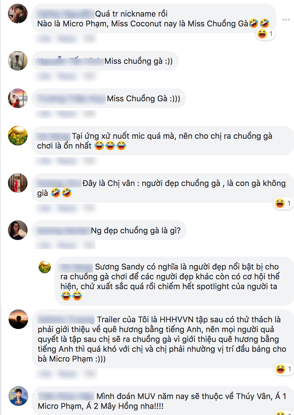 Fan của Thúy Vân lý giải: “Miss chuồng gà nghĩa là thí sinh nổi bật nhưng bị cho ra chuồng gà ngồi chơi để các người đẹp khác còn có cơ hội thể hiện bản thân”.