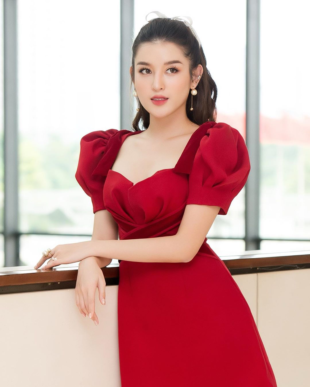 Sau thời gian giãn cách xã hội để phòng tránh dịch Covid-19, các nàng hậu trở lại với công việc đầy tất bật. Chăm chỉ xuất hiện trên sóng truyền hình với vai trò khách mời tại các talkshow, á hậu Huyền My gây ấn tượng với fan bởi sắc vóc rạng ngời. Diện váy đỏ rực rỡ cùng với phụ kiện cài tóc được sáng tạo từ sợi dây buộc túi hiệu, Á hậu 1 Hoa hậu Việt Nam 2014 vẫn vô cùng cuốn hút nhờ layout trang điểm ngọt ngào.