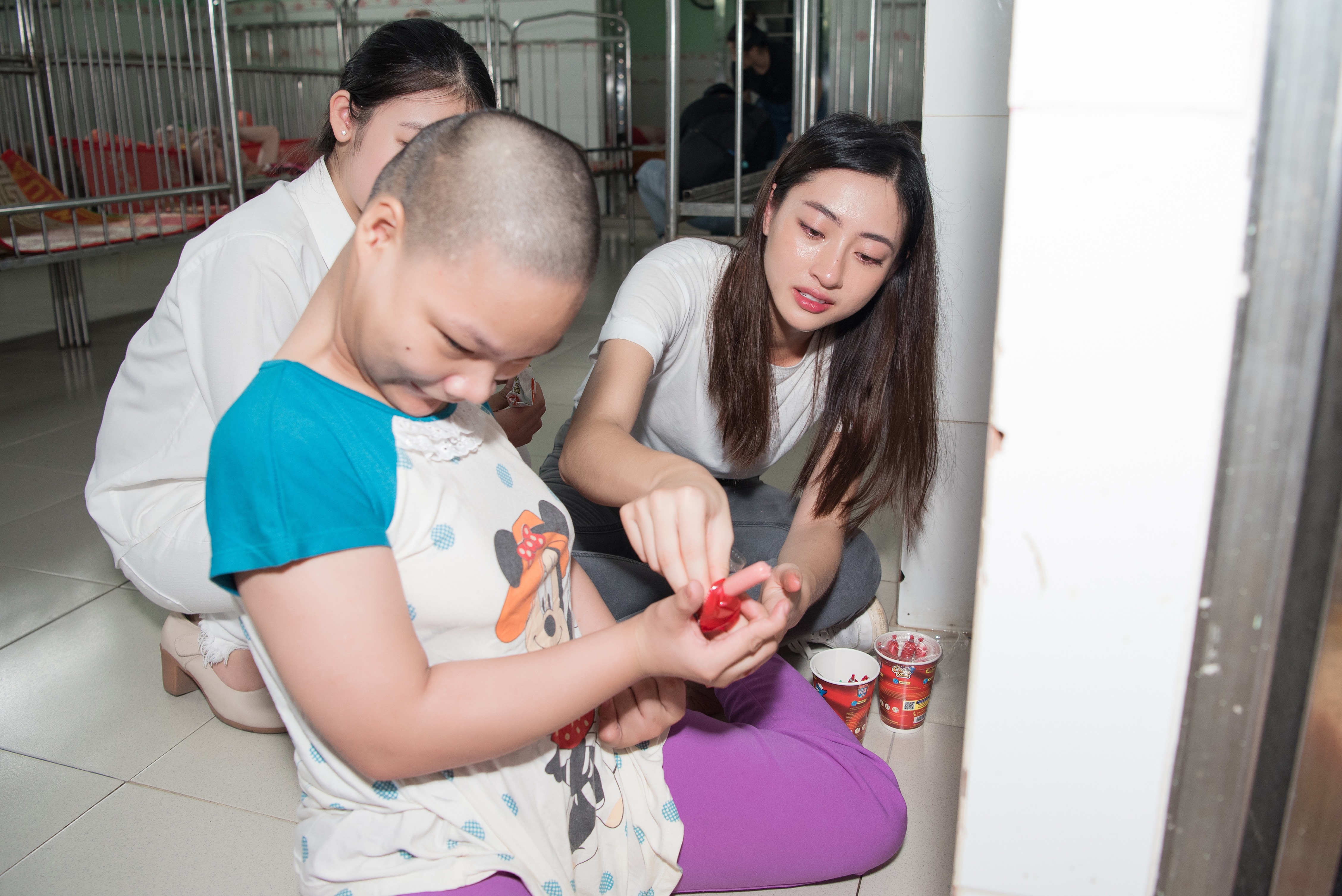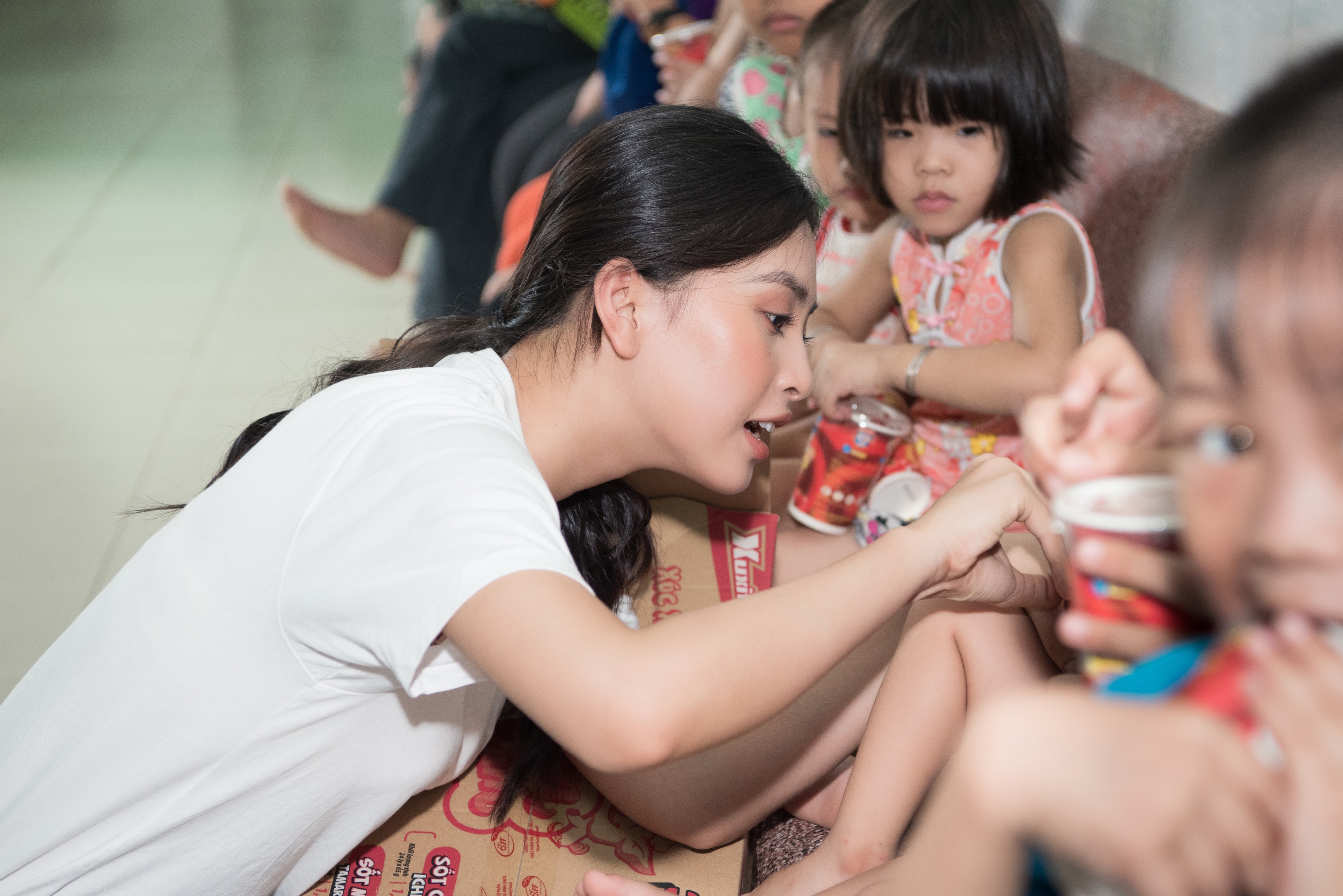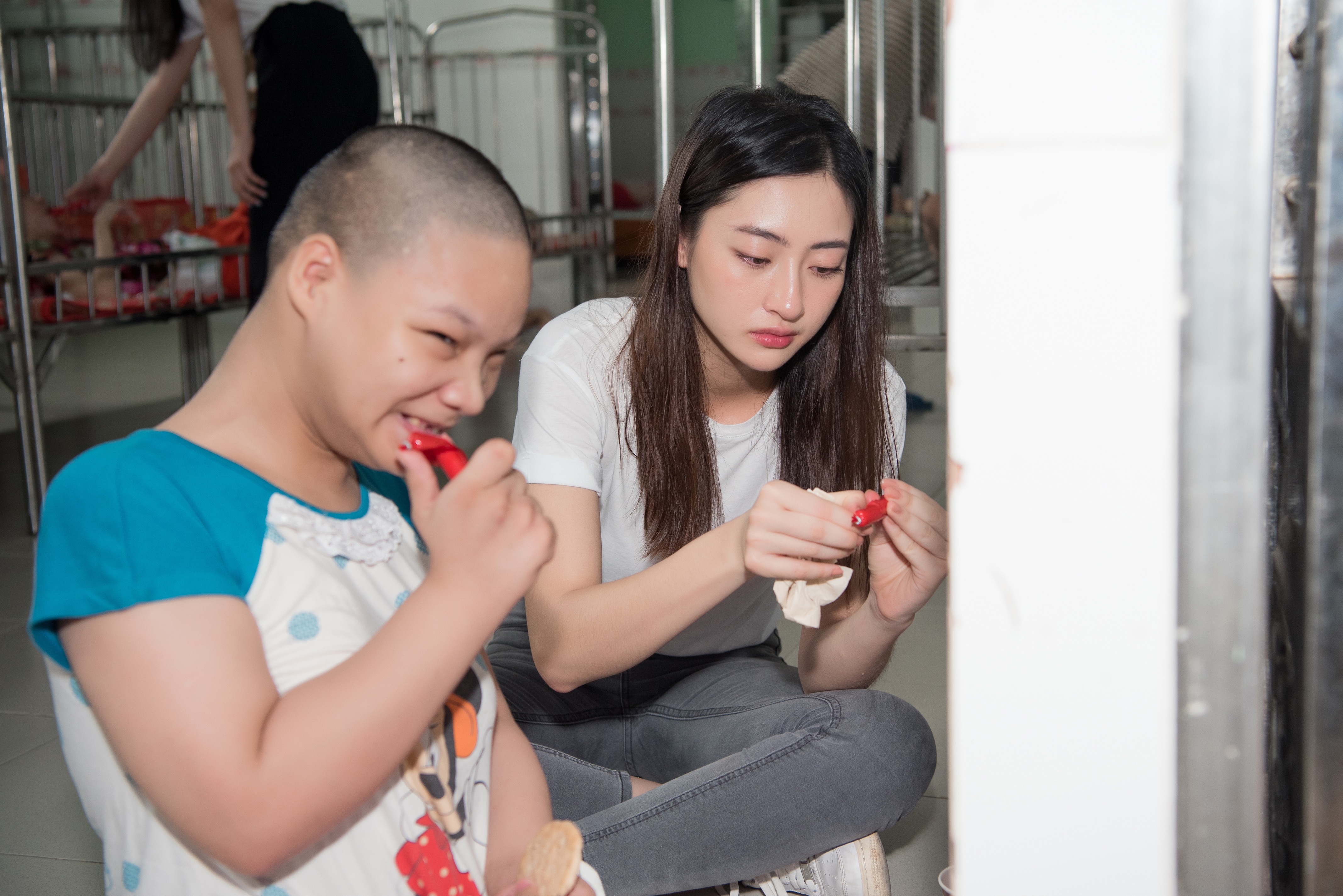 Không chỉ đơn thuần là đến trao tặng quà mà các người đẹp Trần Tiểu Vy, Lương Thùy Linh, Tường San, Kiều Loan, Thúy An còn dành thời gian giao lưu và chơi đùa cùng các em nhỏ tại mái ấm. Các em thích thú khi được những người đẹp hướng dẫn rửa tay đúng cách. Các nàng hậu còn được tiếp xúc, trò chuyện với nhiều hoàn cảnh khuyết tật và người già không nơi nương tựa nơi đây.