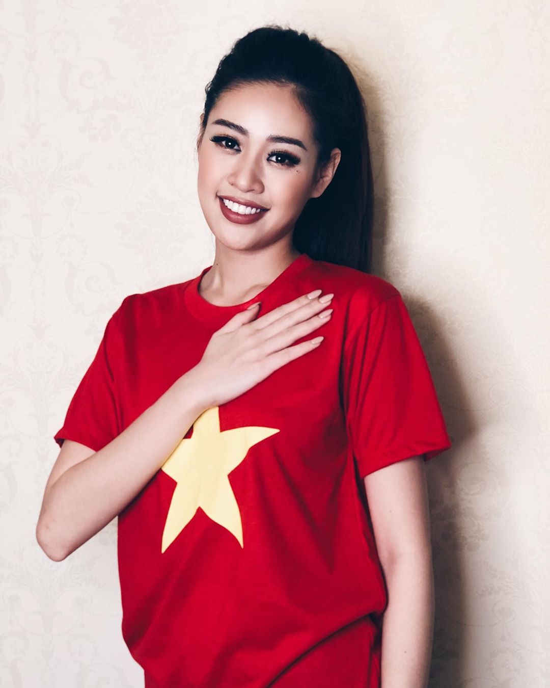 Người đẹp diện áo thun in cờ tổ quốc thể hiện tình yêu dành cho đất nước.