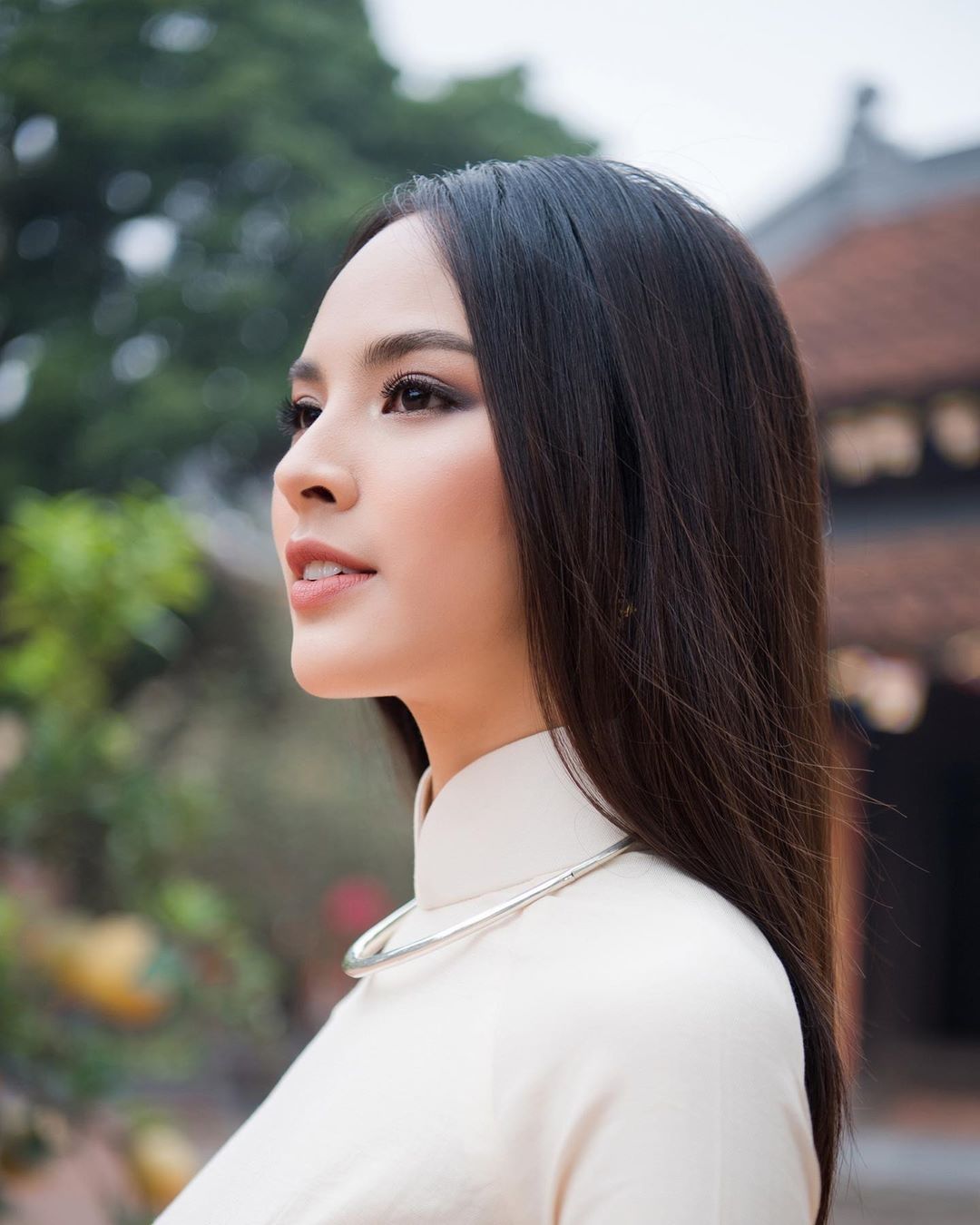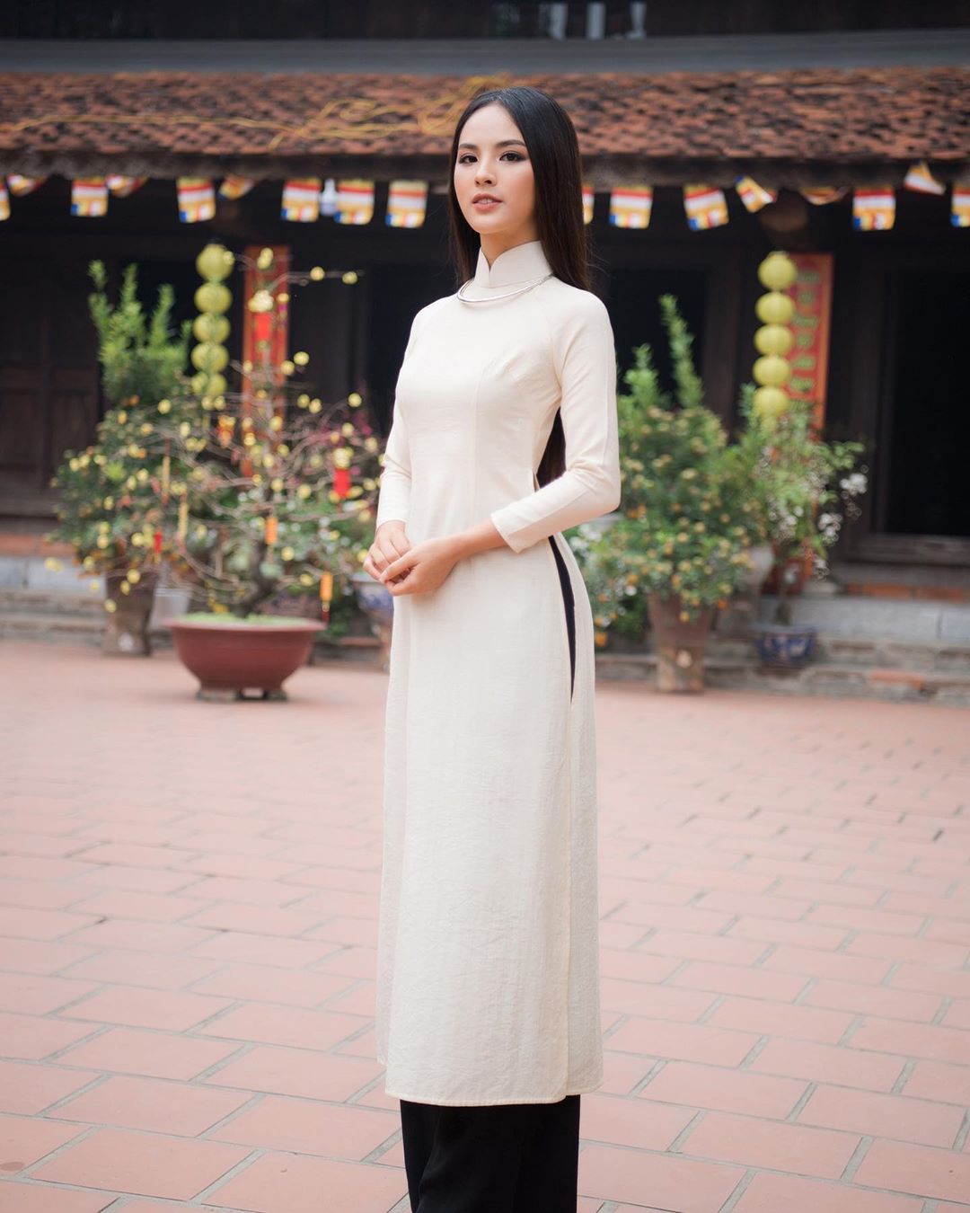 Người đẹp khoe dáng nền nã trong tà áo dài truyền thống.