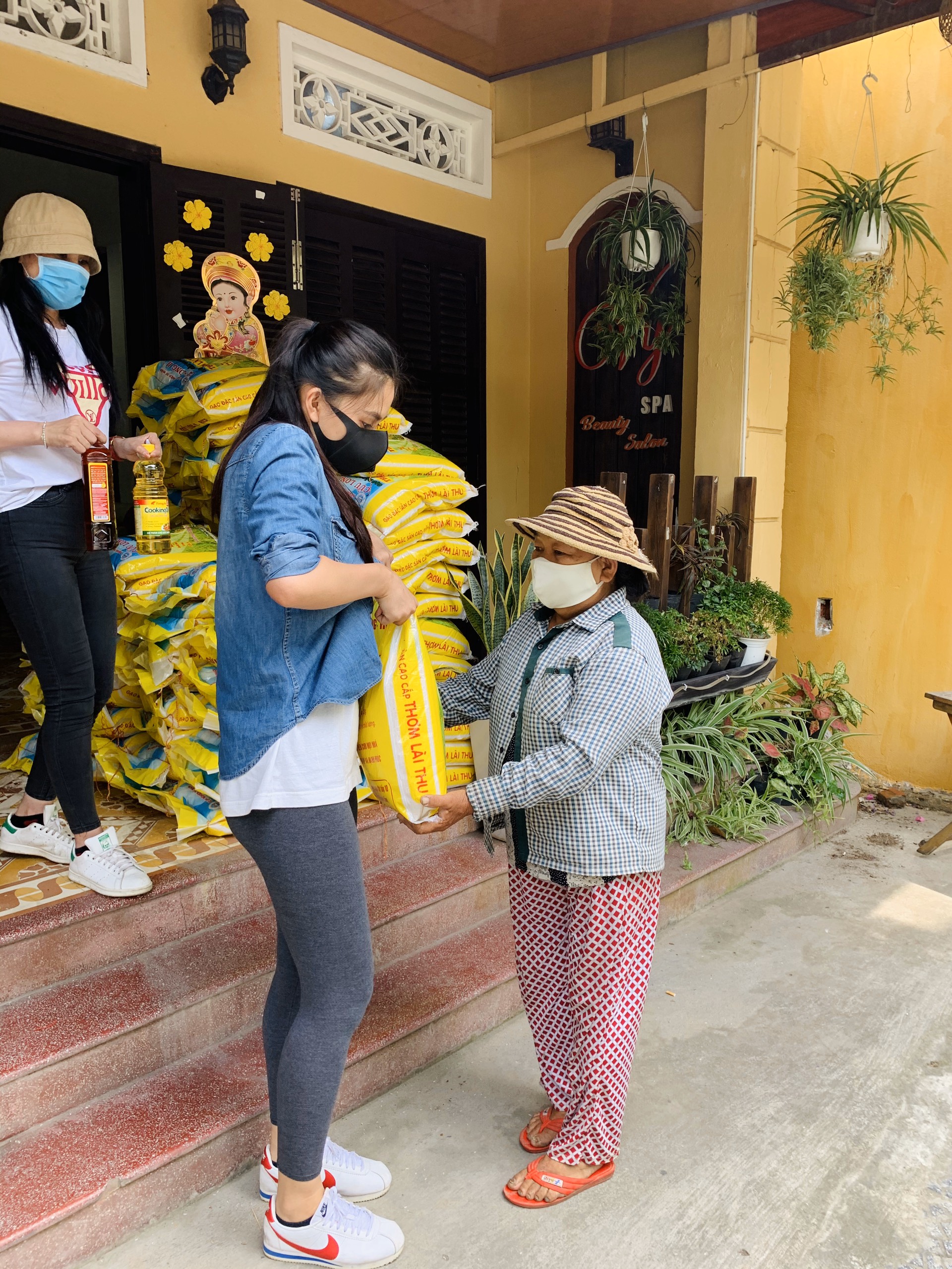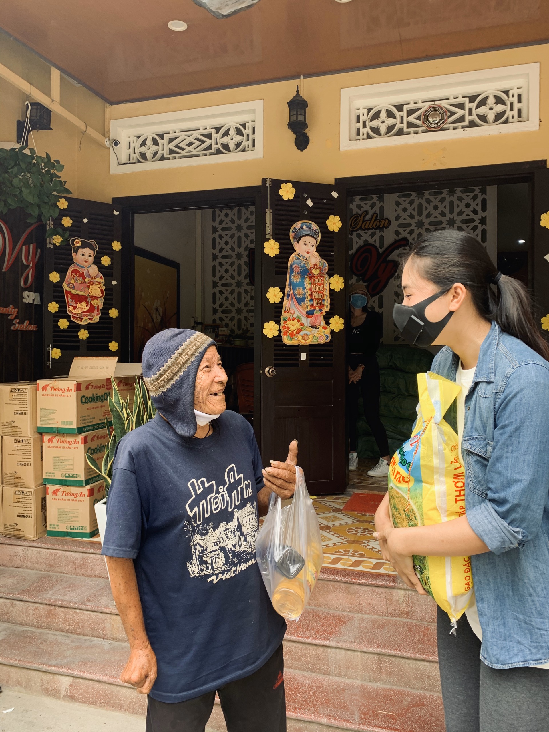 Không chỉ phát quà mà cô còn thân thiện hỏi thăm tình hình cuộc sống của mọi người trong quãng thời gian này. Bà con Hội An đều bày tỏ sự hạnh phúc khi được nhận những món quà tuy nhỏ nhưng đầy ấm áp từ nàng hậu sinh năm 2000.