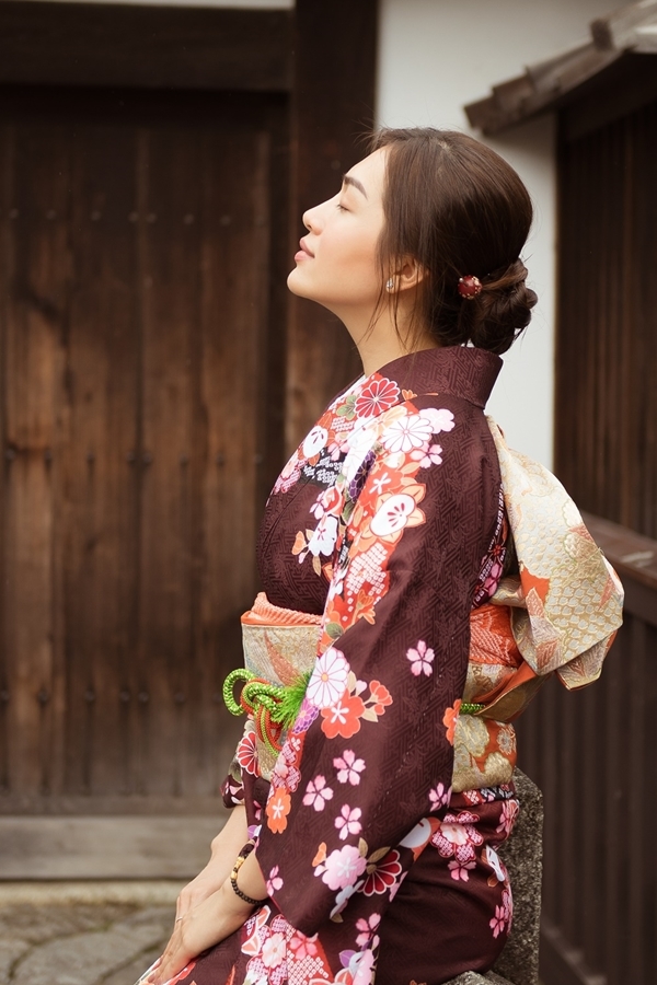 Có lẽ Nhật Bản là mảnh đất đầy duyên nợ với Thúy Vân. Đó là lí do vì sao khi diện trên mình bộ Kimono truyền thống của nước bạn Thúy Vân lại mang tinh thần nâng niu và am hiểu về nó như những cô gái Nhật thực thụ.