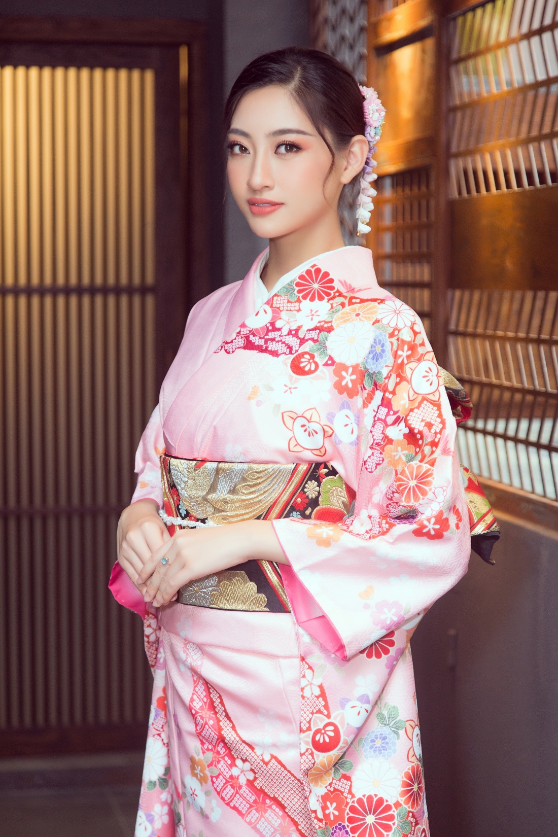 Lương Thùy Linh khoe sắc trong trang phục truyền thống của Nhật Bản. Thùy Linh luôn luôn gây thiện cảm cho người đối diện với vẻ đẹp đài các, kiêu sa.
