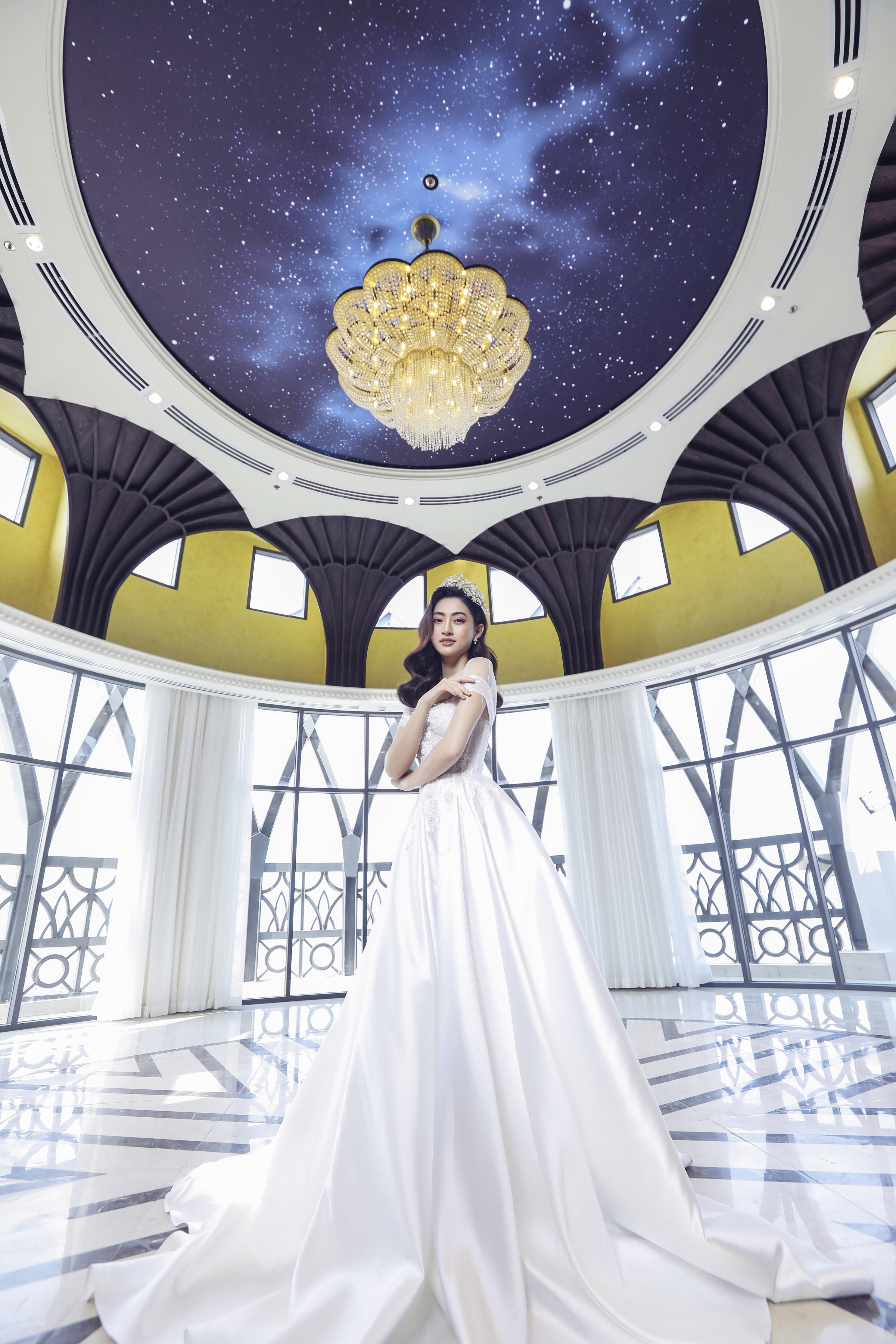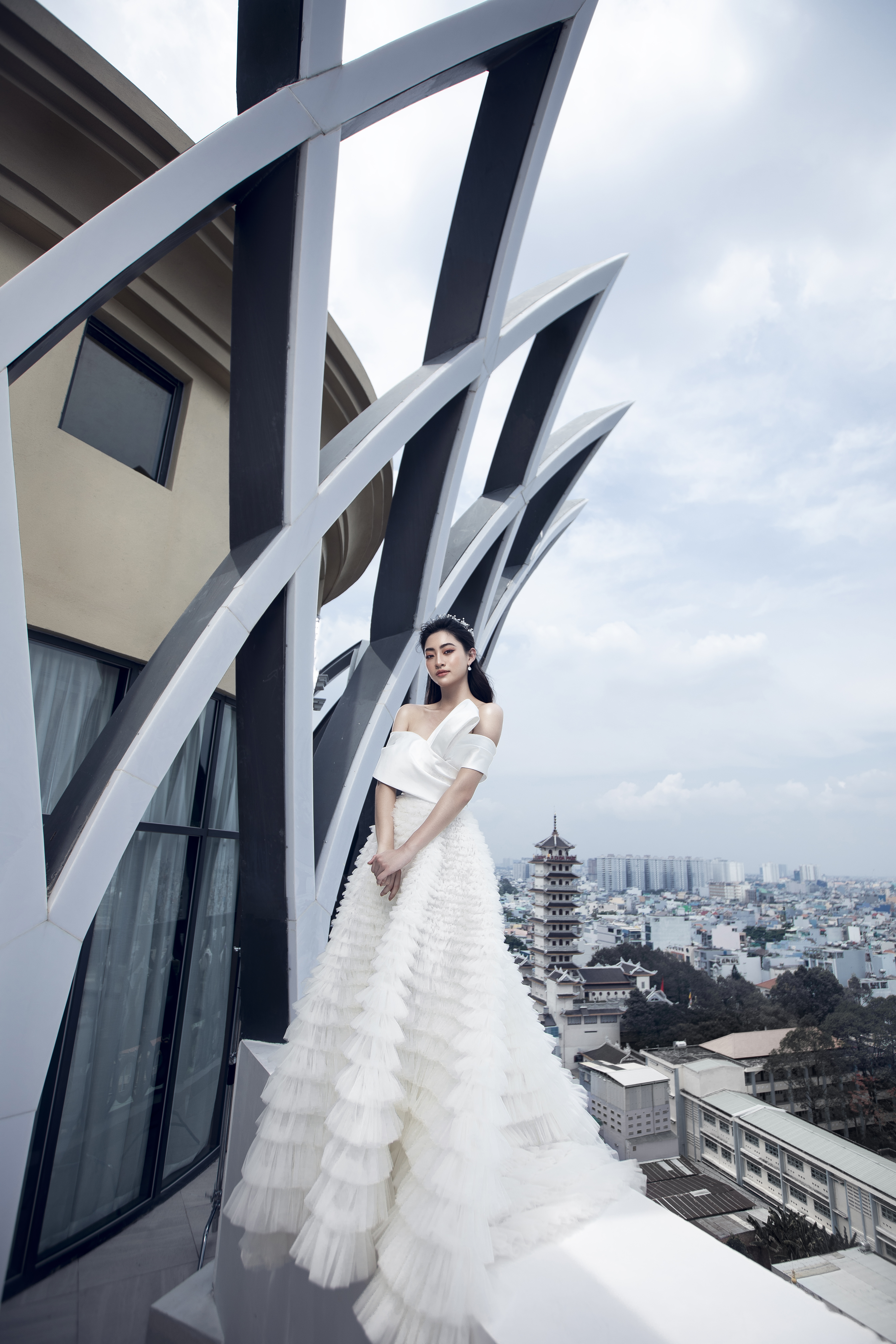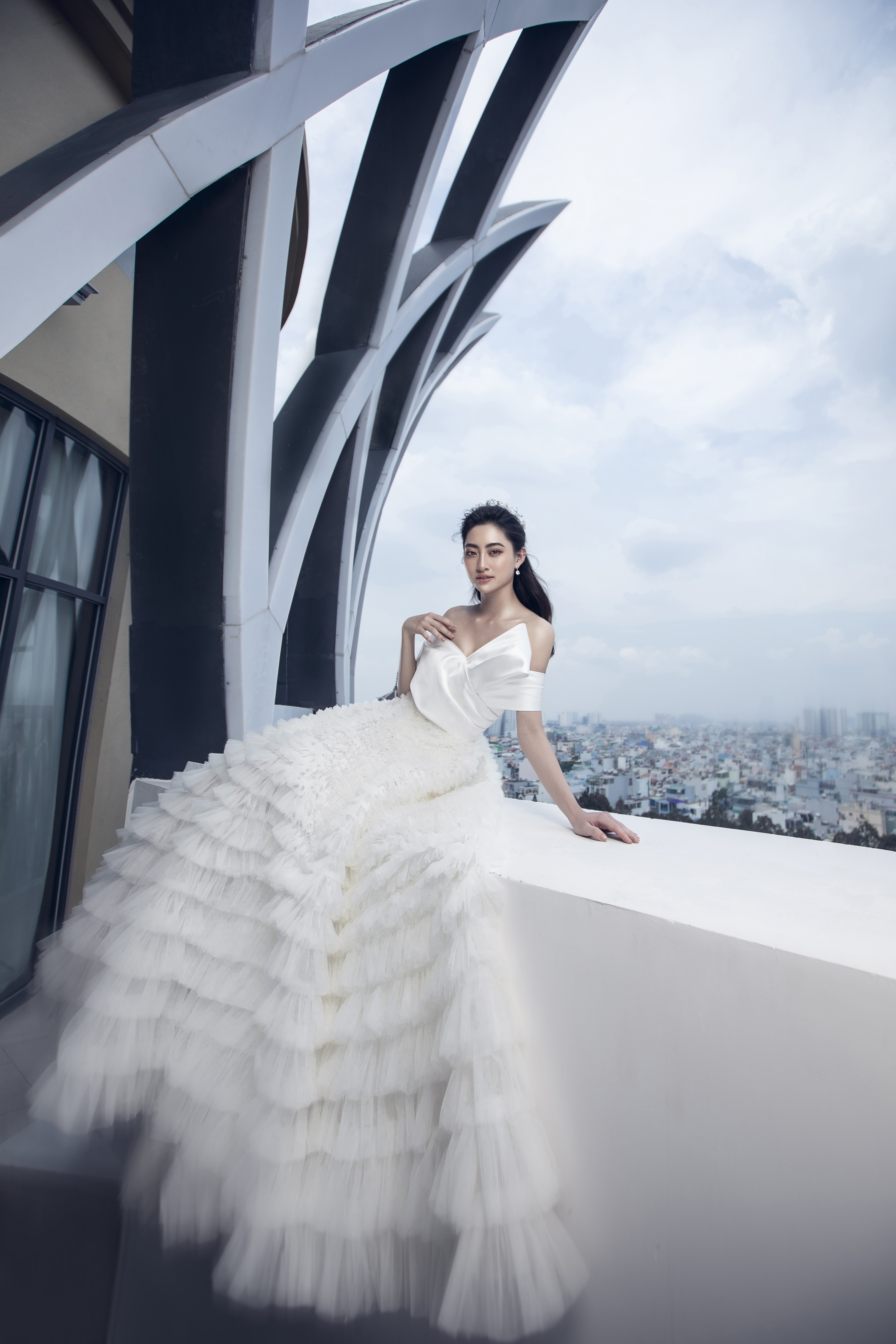 Giữa không gian sang trọng, Lương Thùy Linh mang vẻ đẹp sang trọng, kiều diễm. Lương Thùy Linh đã không ngại thả dáng trên lan can sân thượng của tòa nhà cao tầng. Tạo hình của Lương Thùy Linh thể hiện tiếng gọi vang vọng thu hút mọi sự chú ý đổ dồn về cô nàng Lọ Lem, khi ước mơ được khoác lên mình bộ cánh sang trọng sánh vai cùng nửa kia bước đi trong không gian cưới choáng ngợp trở thành hiện thực.